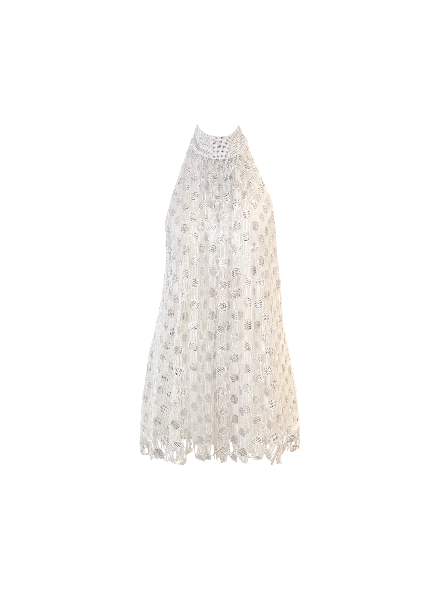 Halter Neck Crystal Embellished Mini Dress With Neck Details