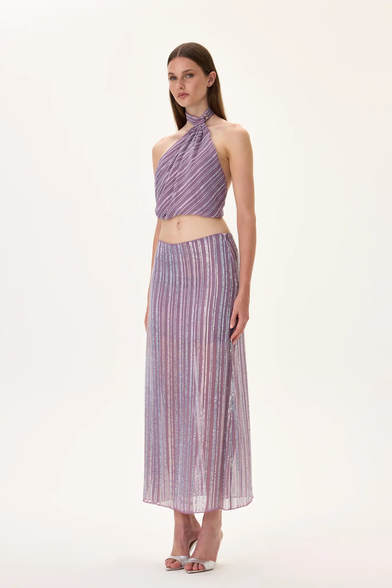 Violet Crystal Printed Chiffon Midi Skirt
