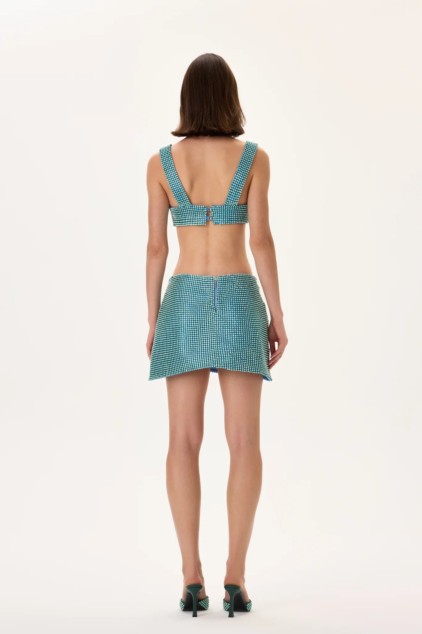 3D Crystal Studded Fabric Mini Skirt
