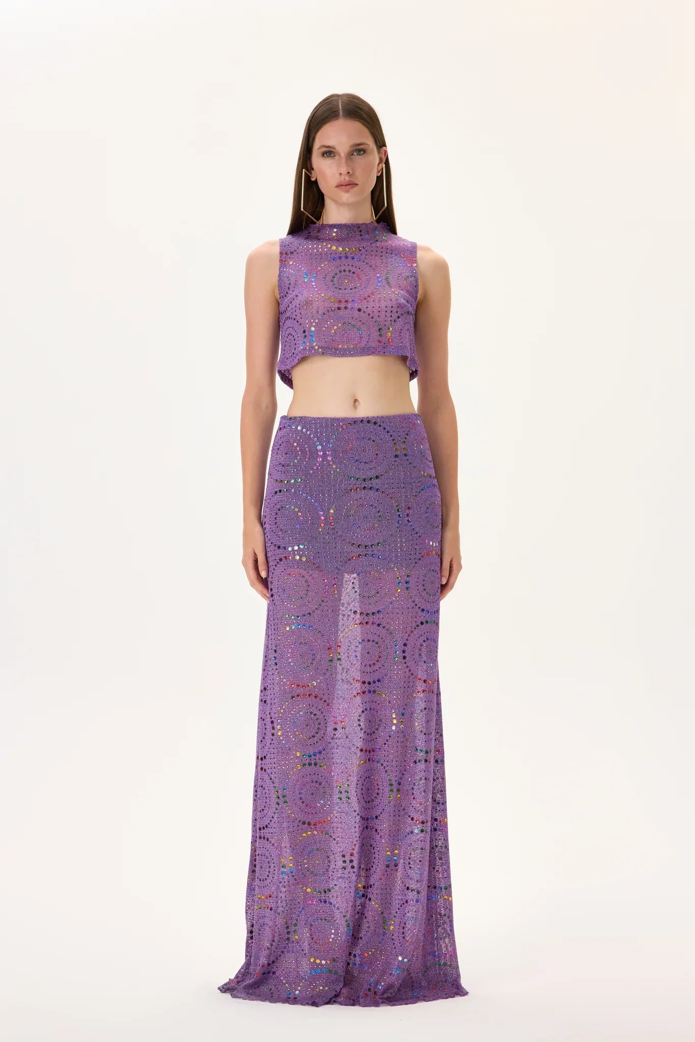 Crochet Multi Color Crystal Printed Midi Skirt