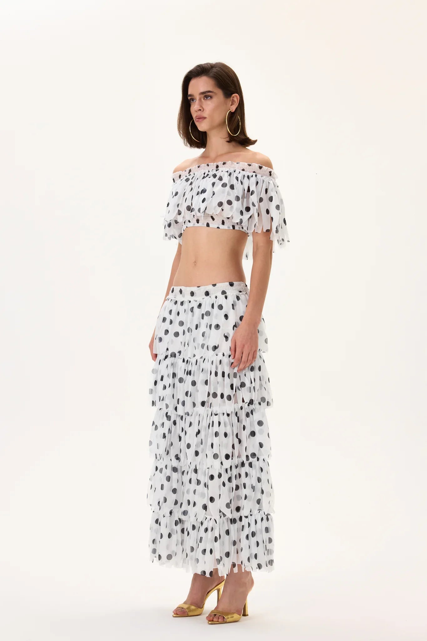 Laser Cut Polka Dot Chiffon Elasticated Midi Skirt