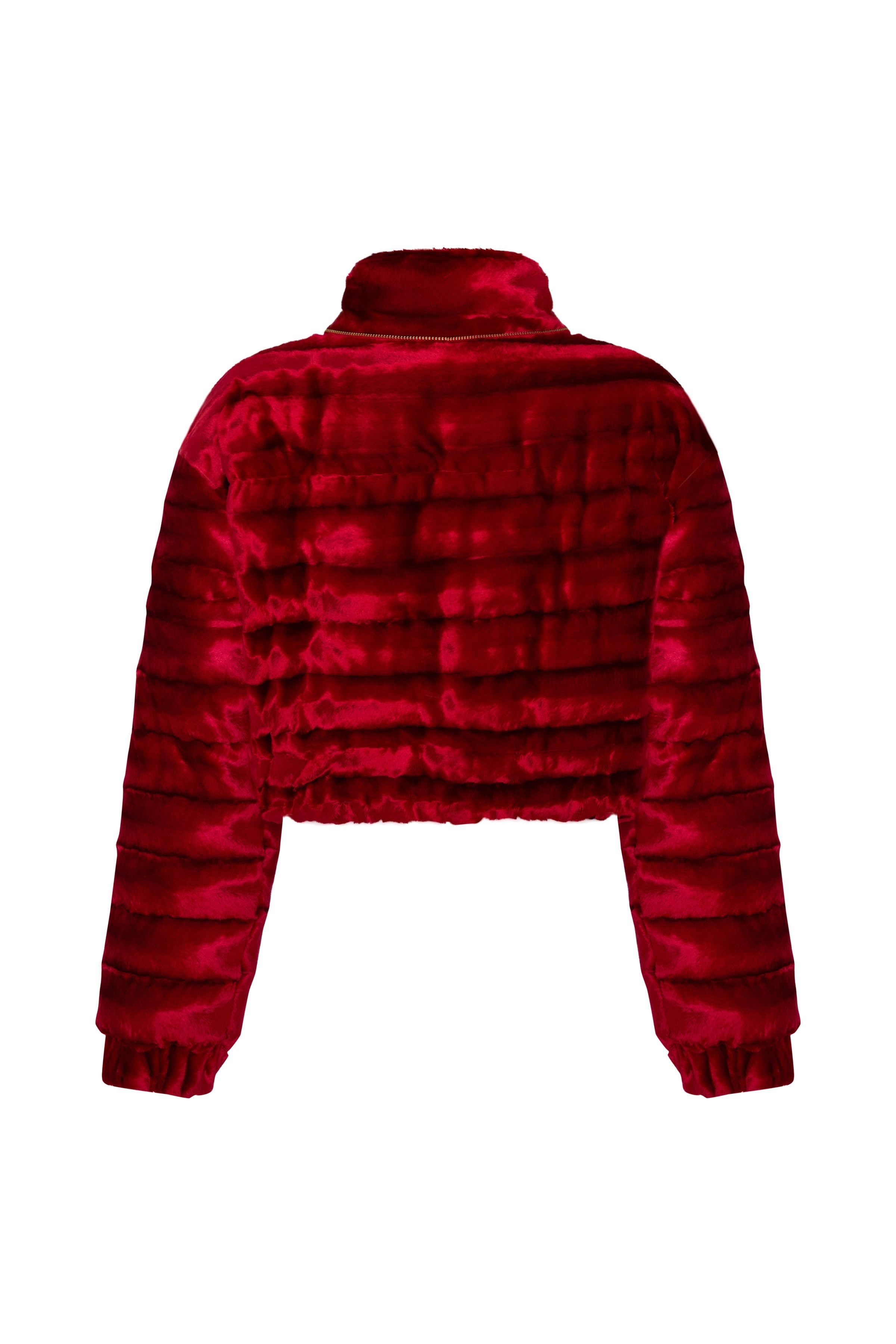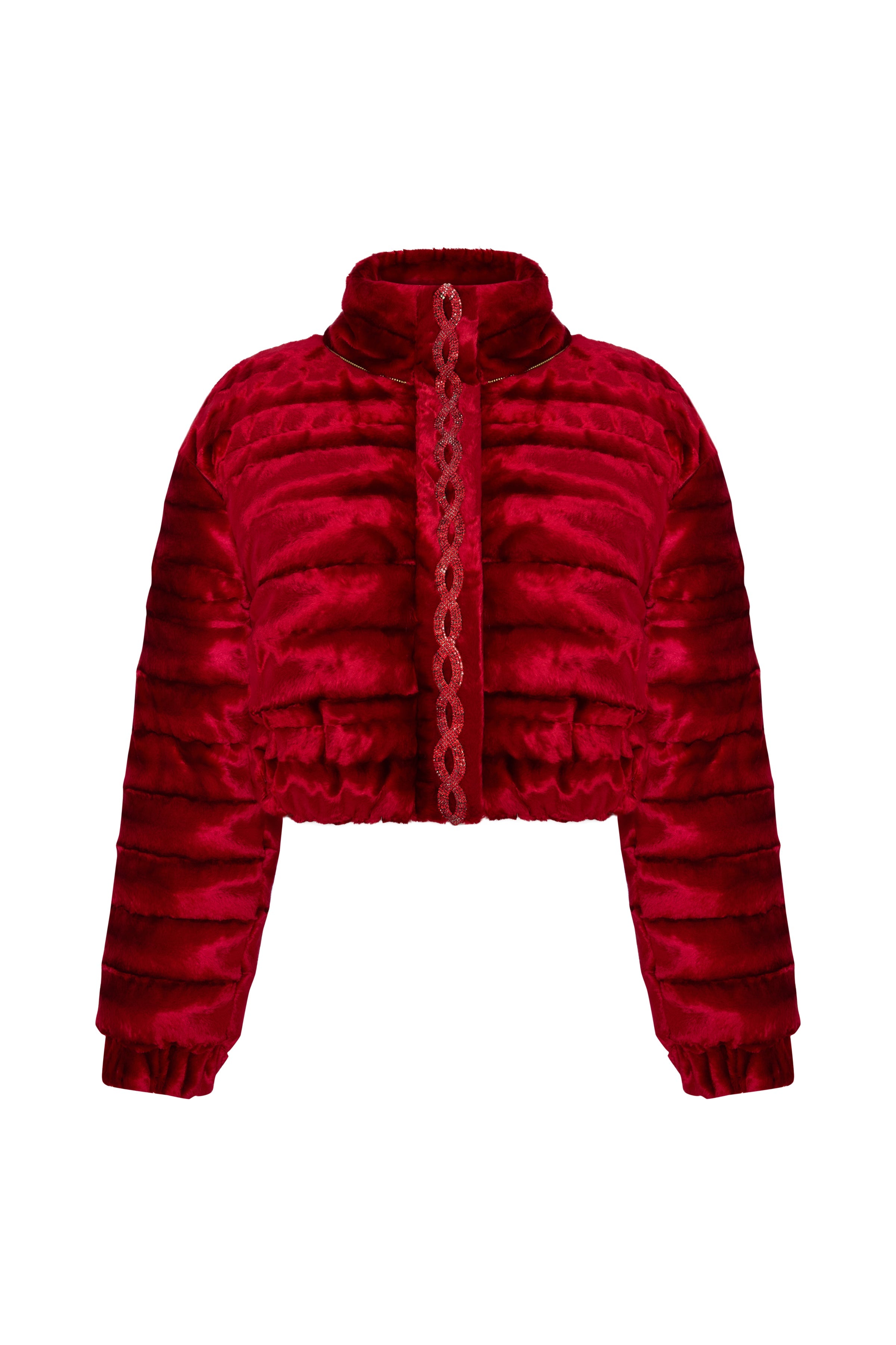 Red Velvet Puff Coat with Crystal Detail