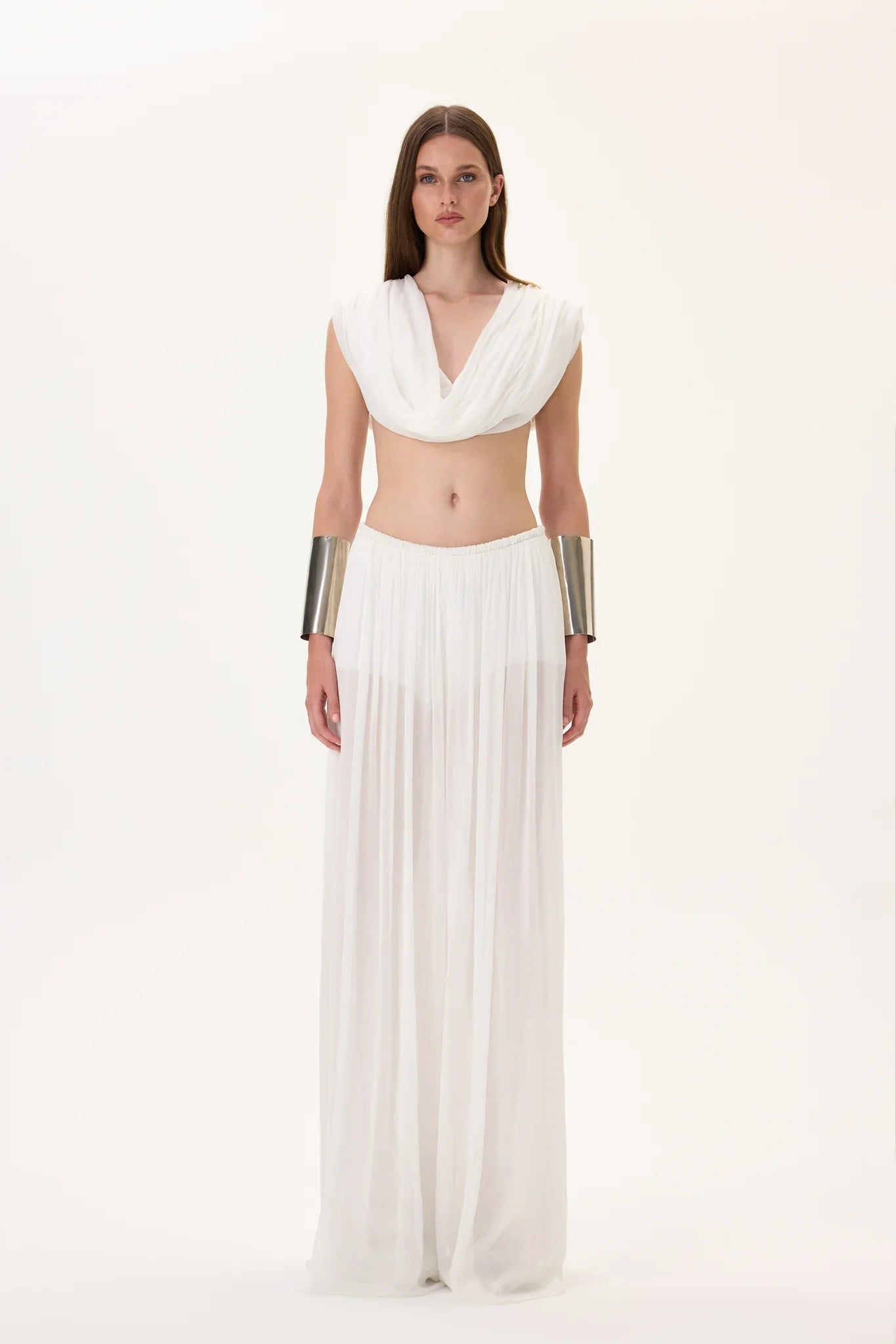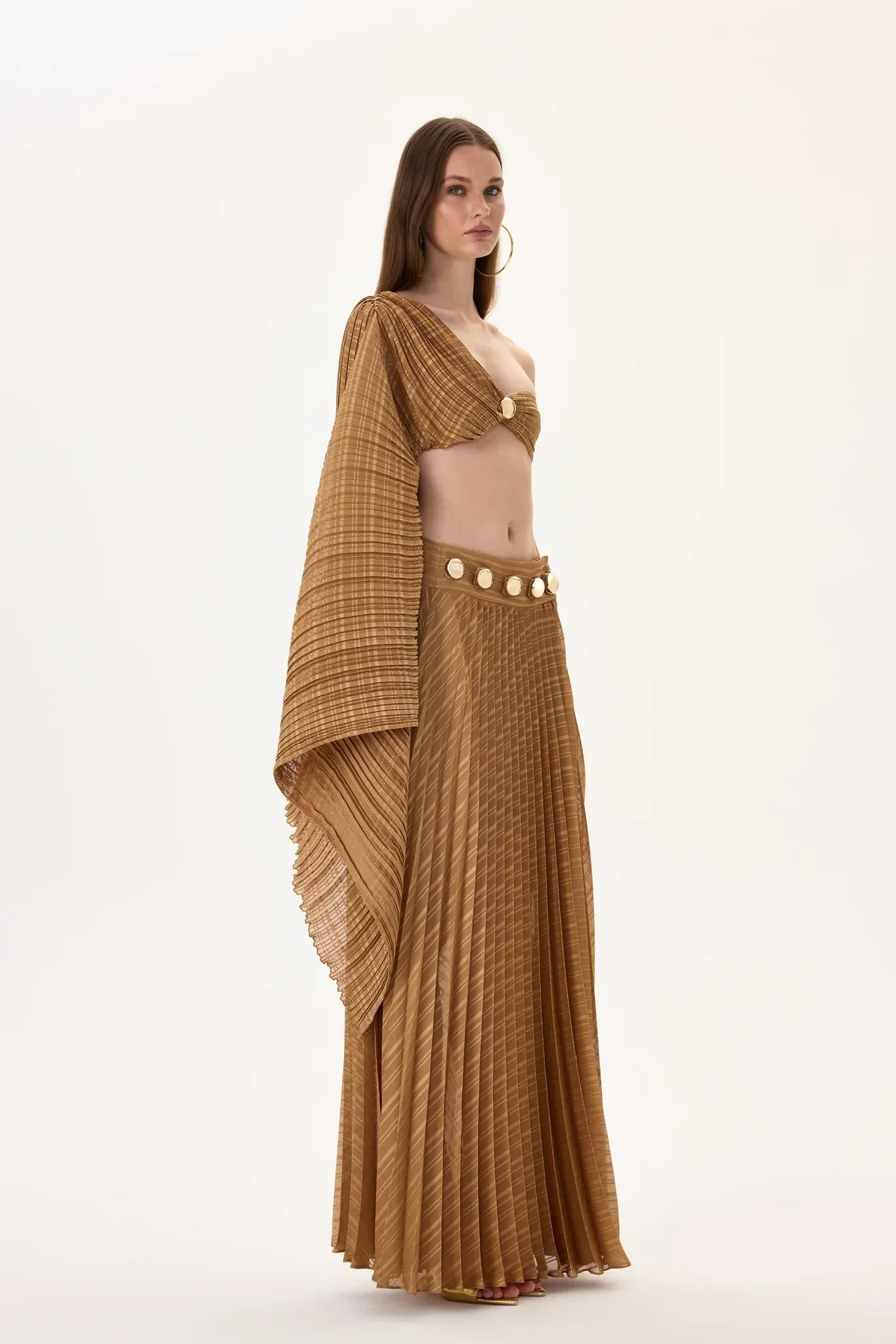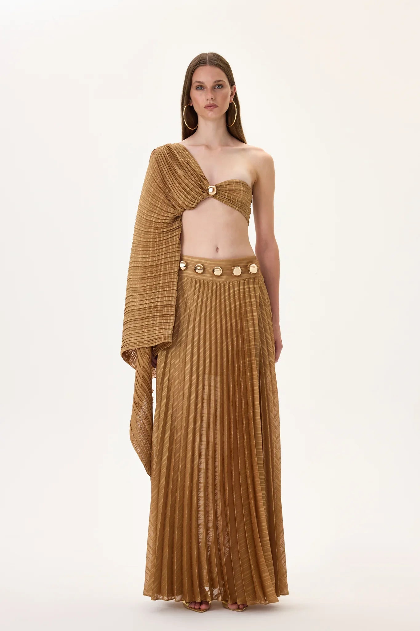 Pleated Chiffon Envelope Skirt With Gold Metal Accessories