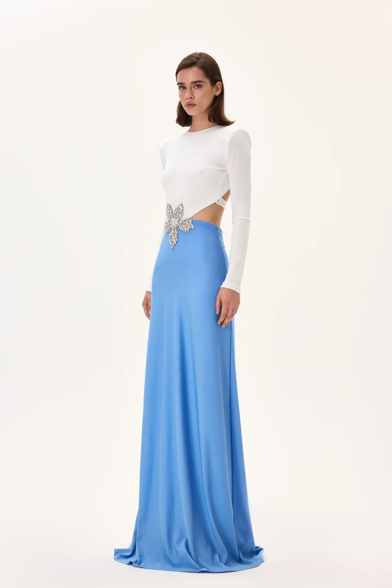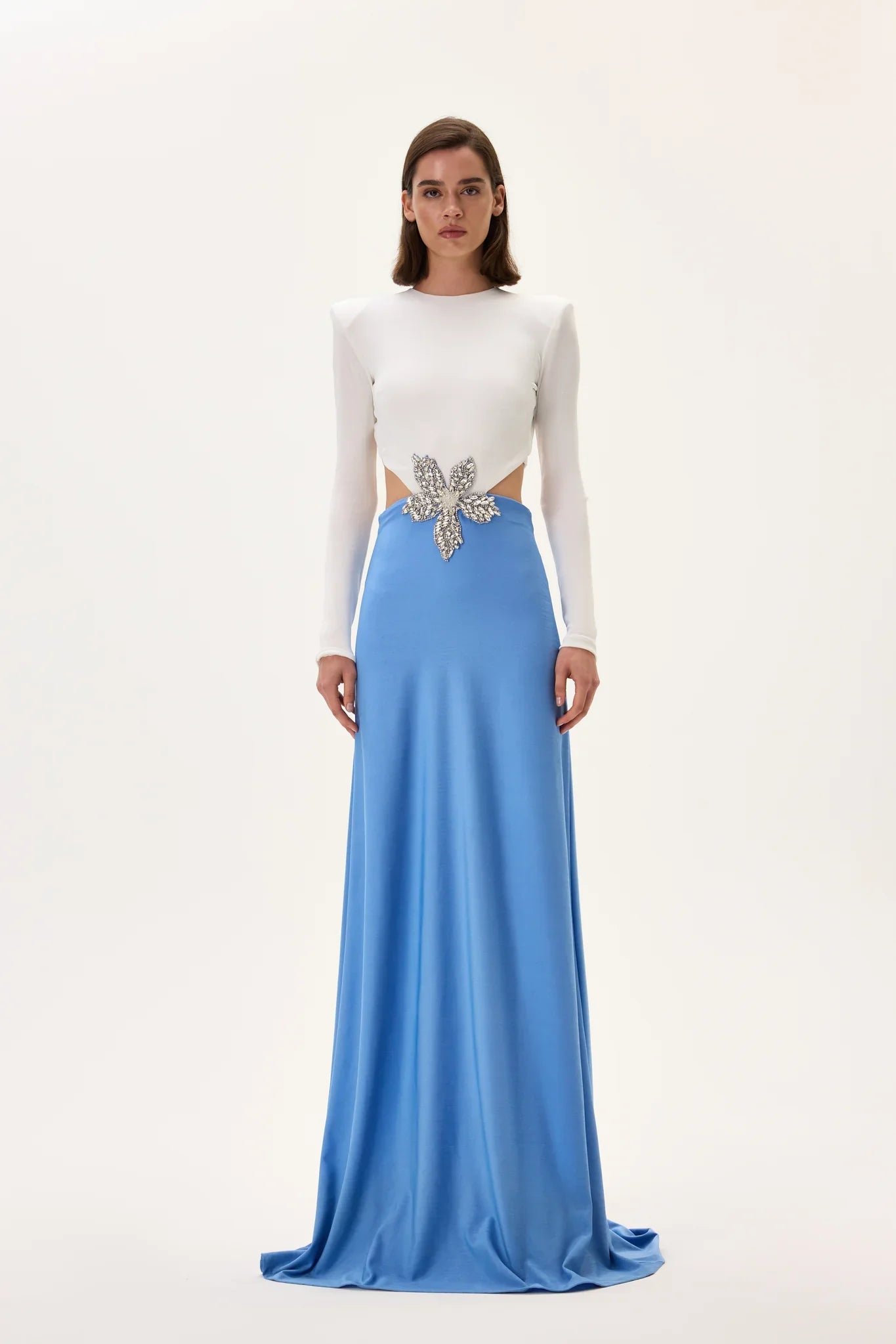 Backless Buzzy Gown With Crystal Flower On The Waist