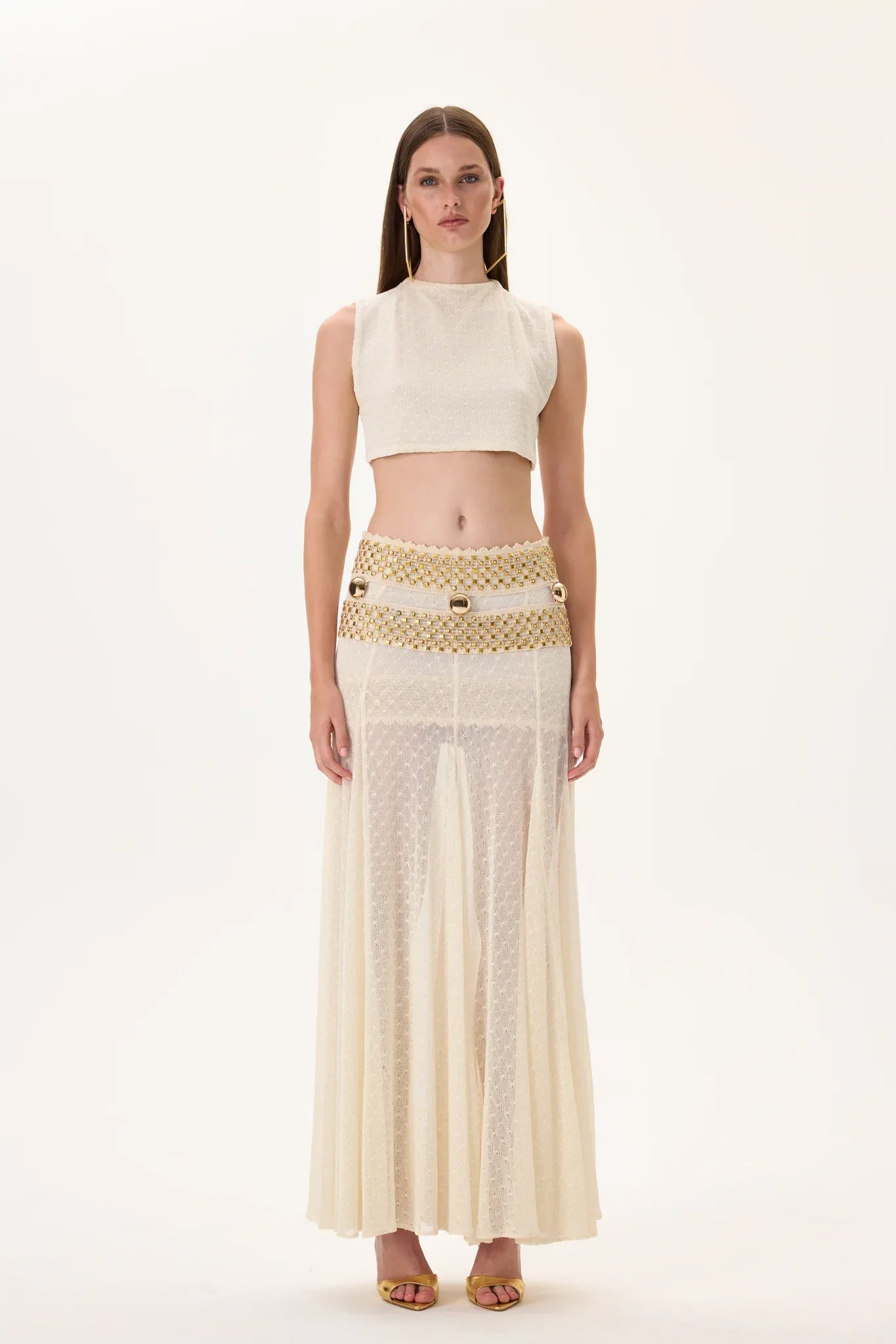 Knitted Midi Skirt With Gold Metal Borderline And Accessories
