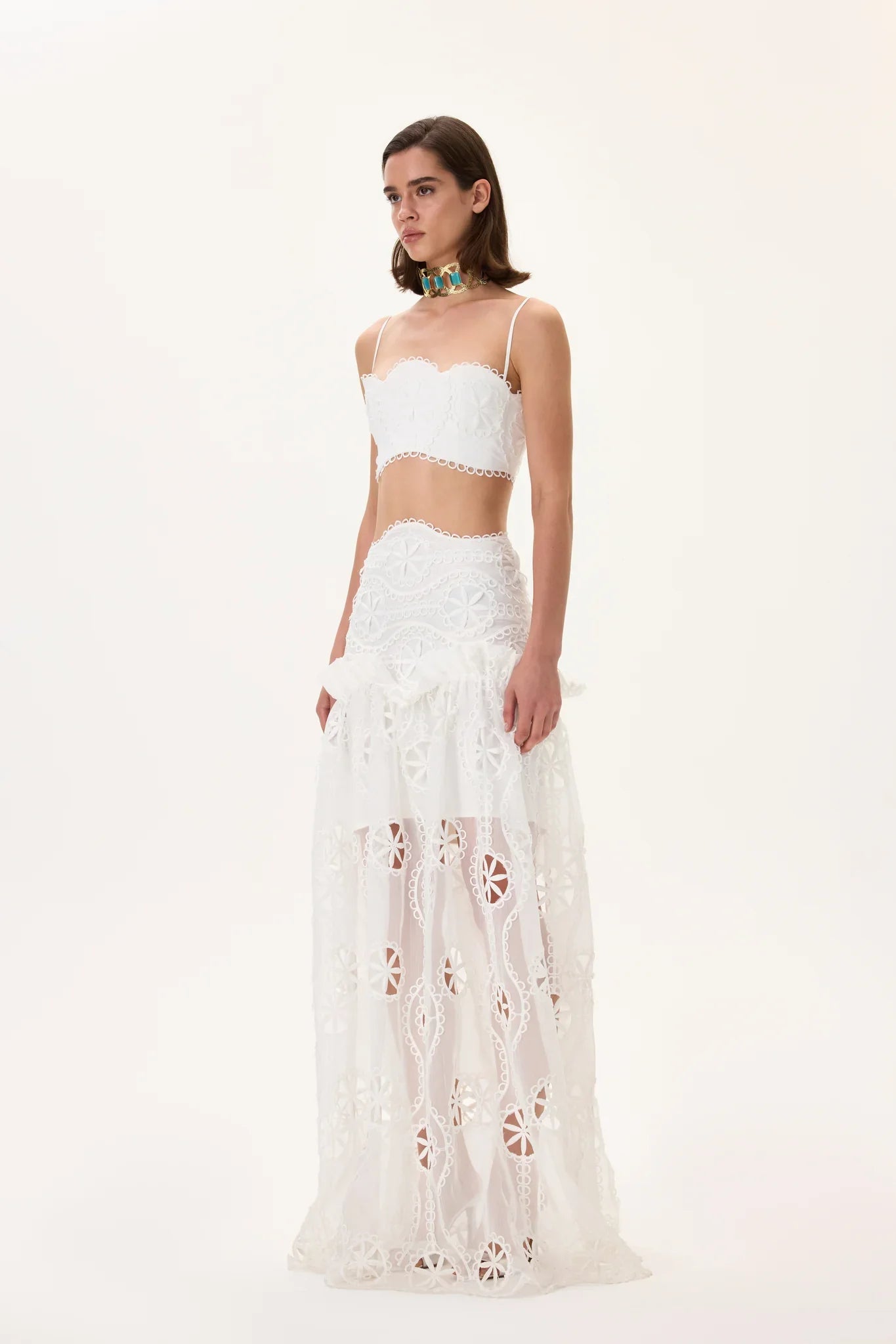 Lace Maxi Skirt With Elasticated & Ruched Waistband