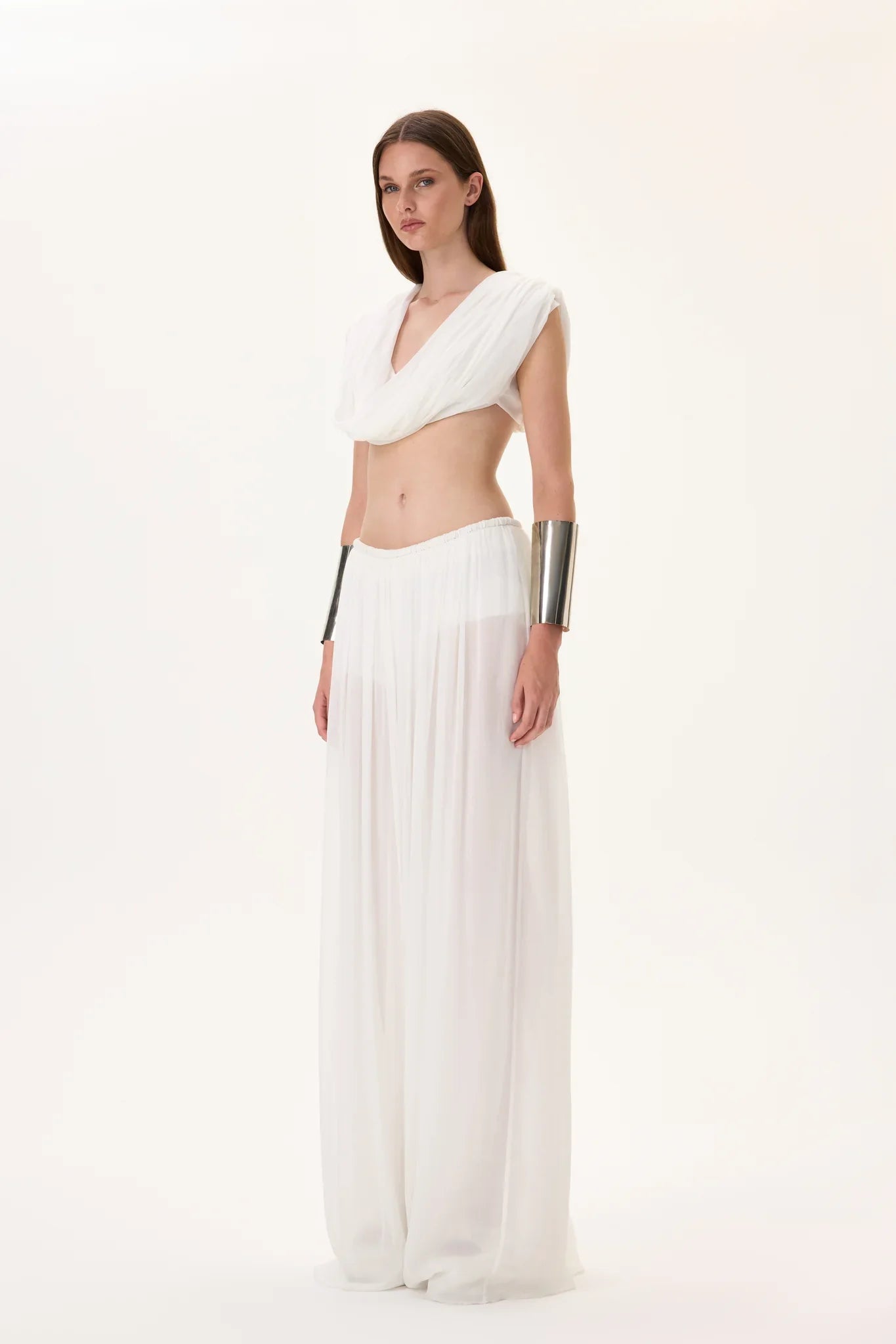 Chiffon Pants Detailed With A Rope-Tied Ruched Waistband