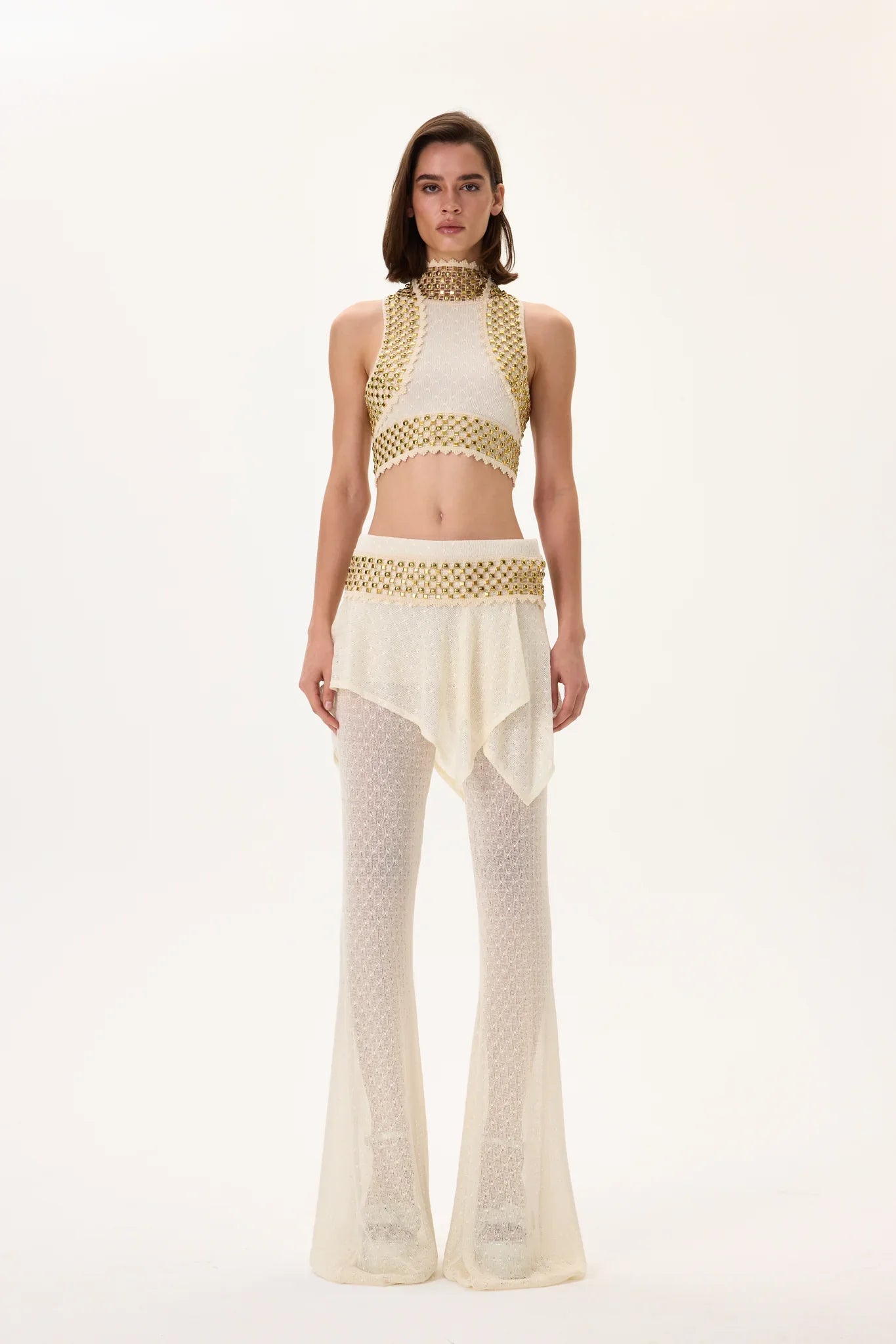 Knitted Crop Top With Gold Metal Borderline And Fully Buttoned Back