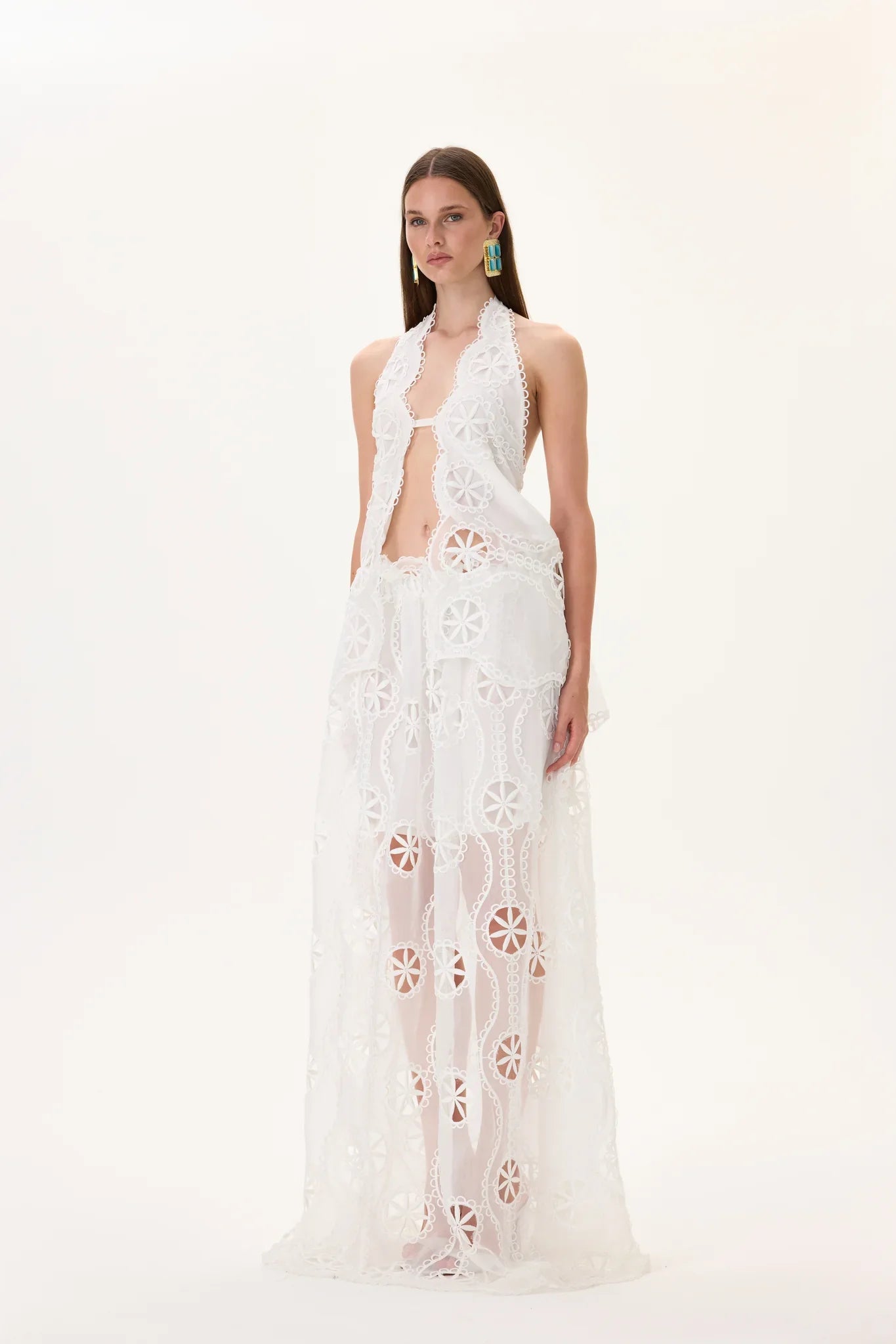 Floor-Length Lace Blouse With Sash Detail In The Back
