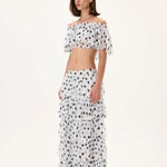 Laser Cut Polka Dot Chiffon Elasticated Midi Skirt