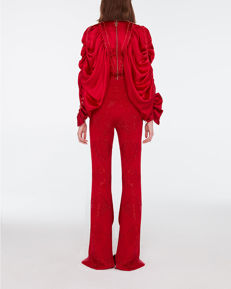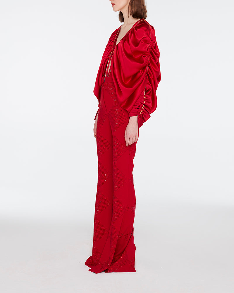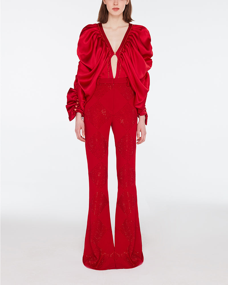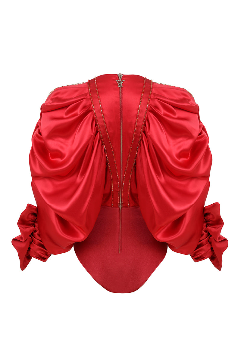 Beaded Satin Bodysuit Blouse
