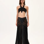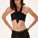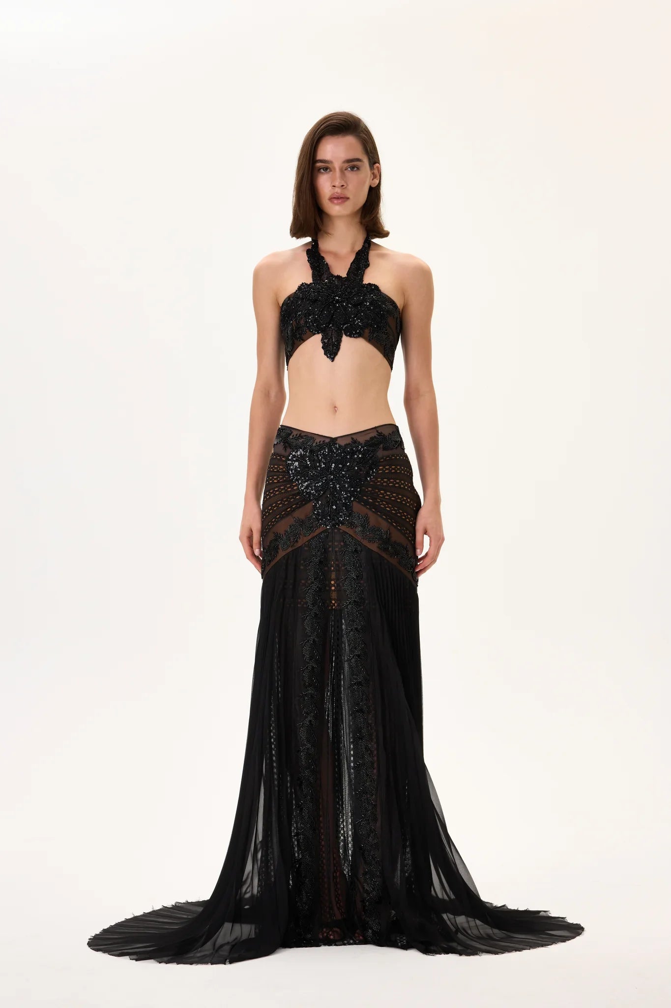 A fully hand-beaded flower-textured top designed with meticulous craftsmanship. Dense beadwork creates a luxurious and sculptural surface that shines under light. Ideal for stylized evening looks, stagewear, or collection pieces requiring strong visual impact.