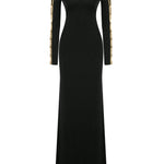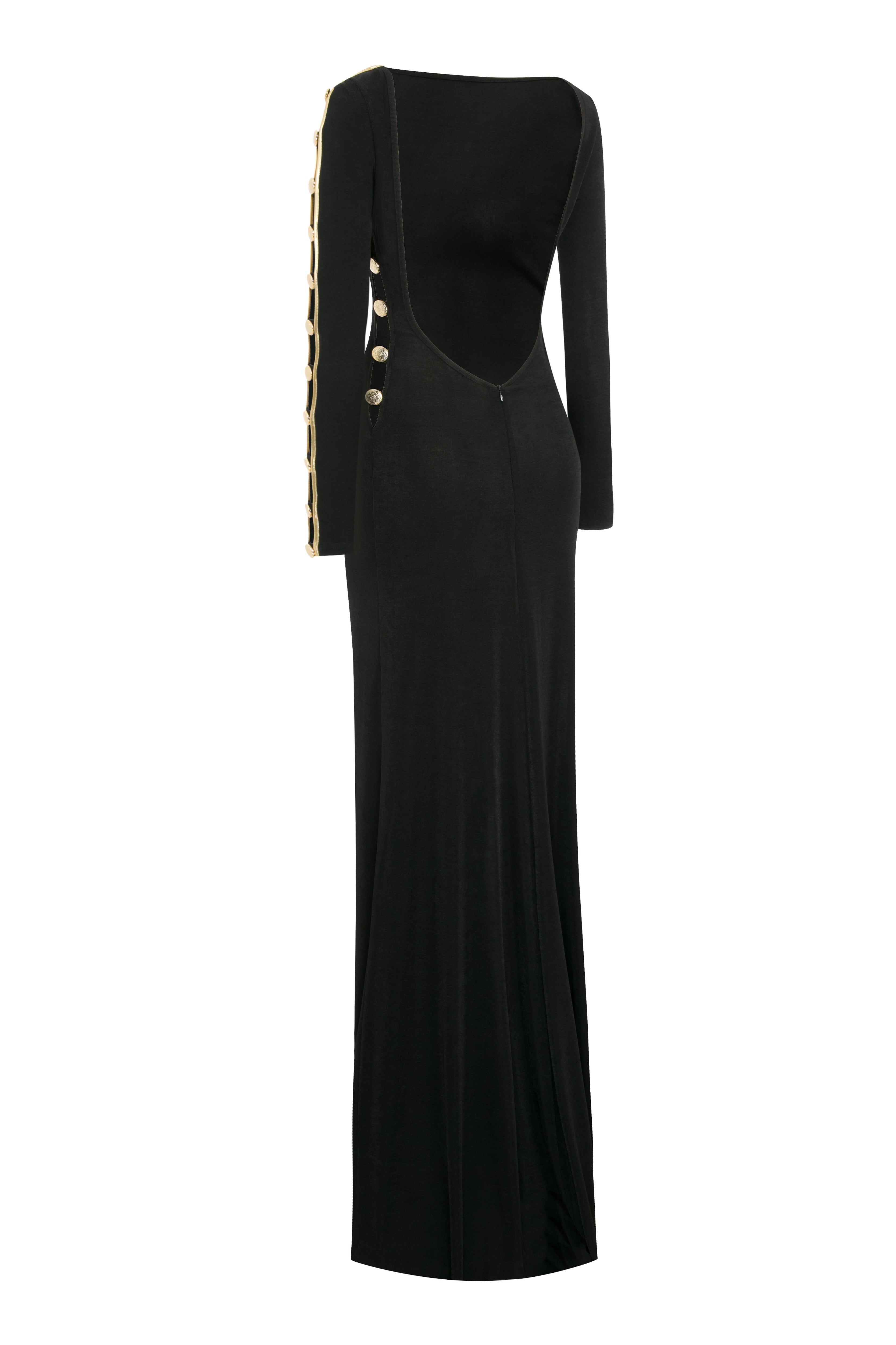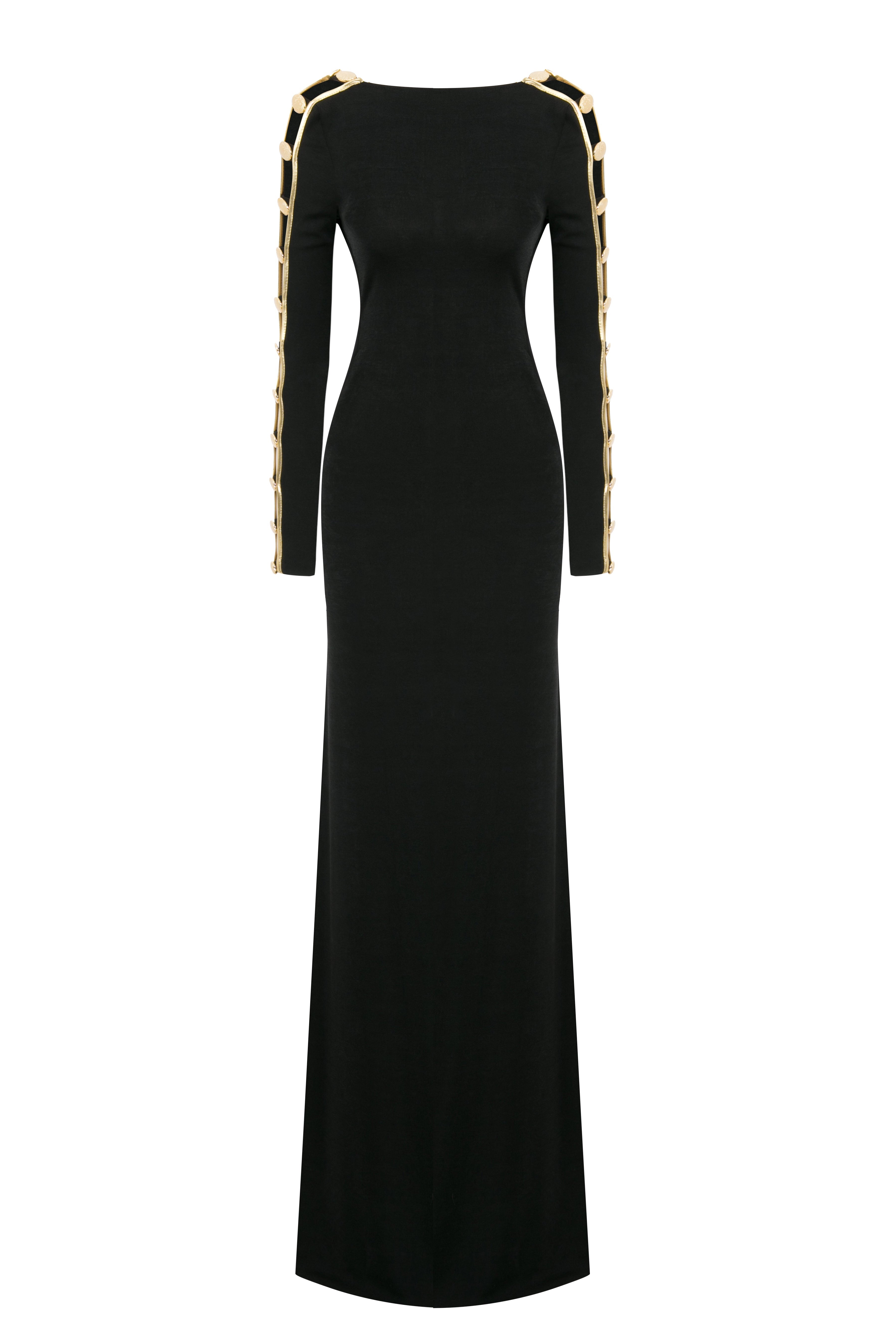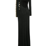 Black Maxi Dress With Cut Out And Gold Accessory Details