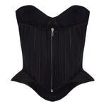 Crafted in lustrous black satin, the corset draws the eye with its sculptural lines and defined silhouette. Boning details enhance the waist, while the curved edges and molded cups evoke a sense of bold femininity and timeless elegance.