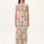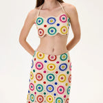 Crochet Multi Color Crystal Printed Midi Skirt