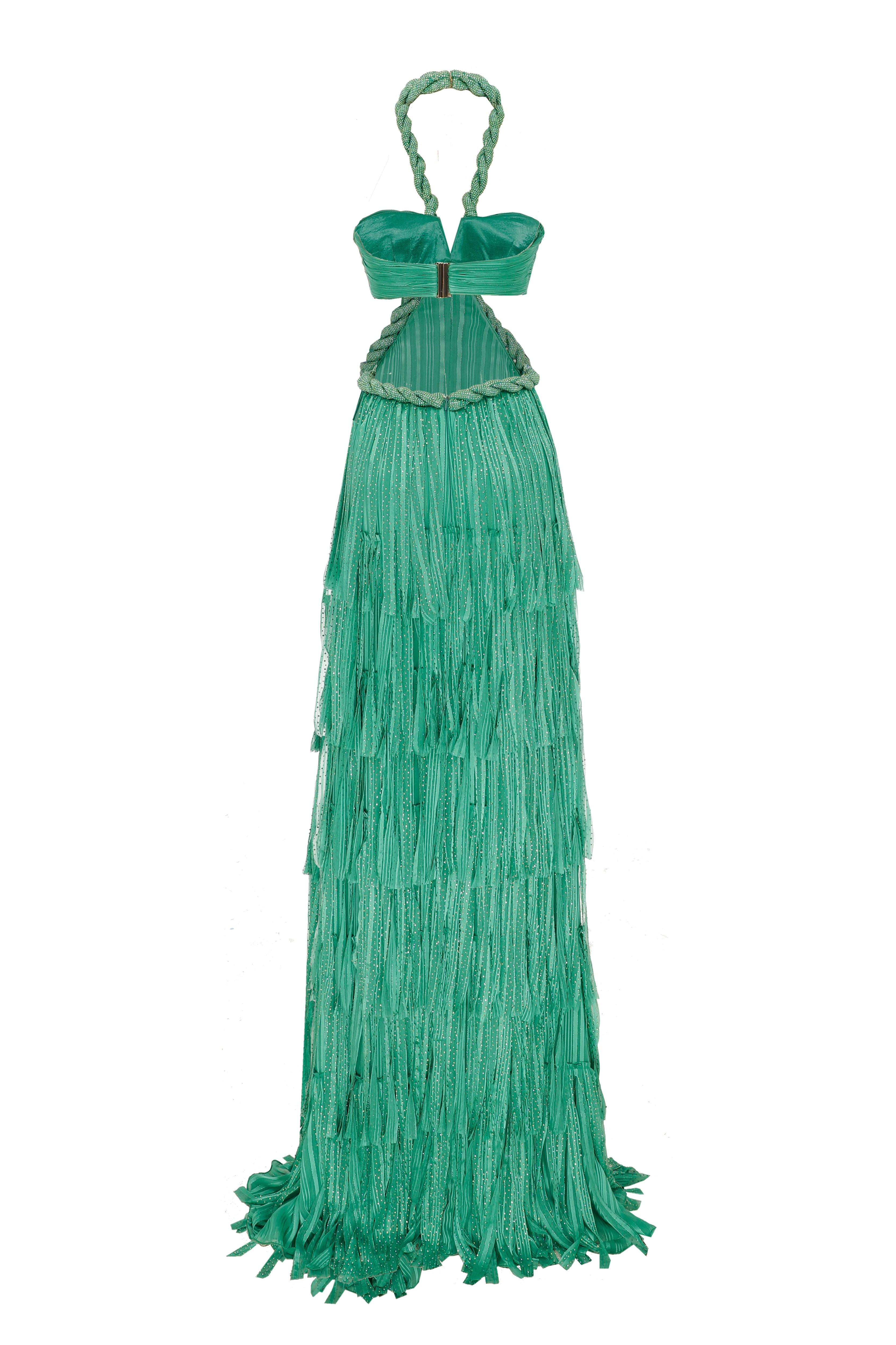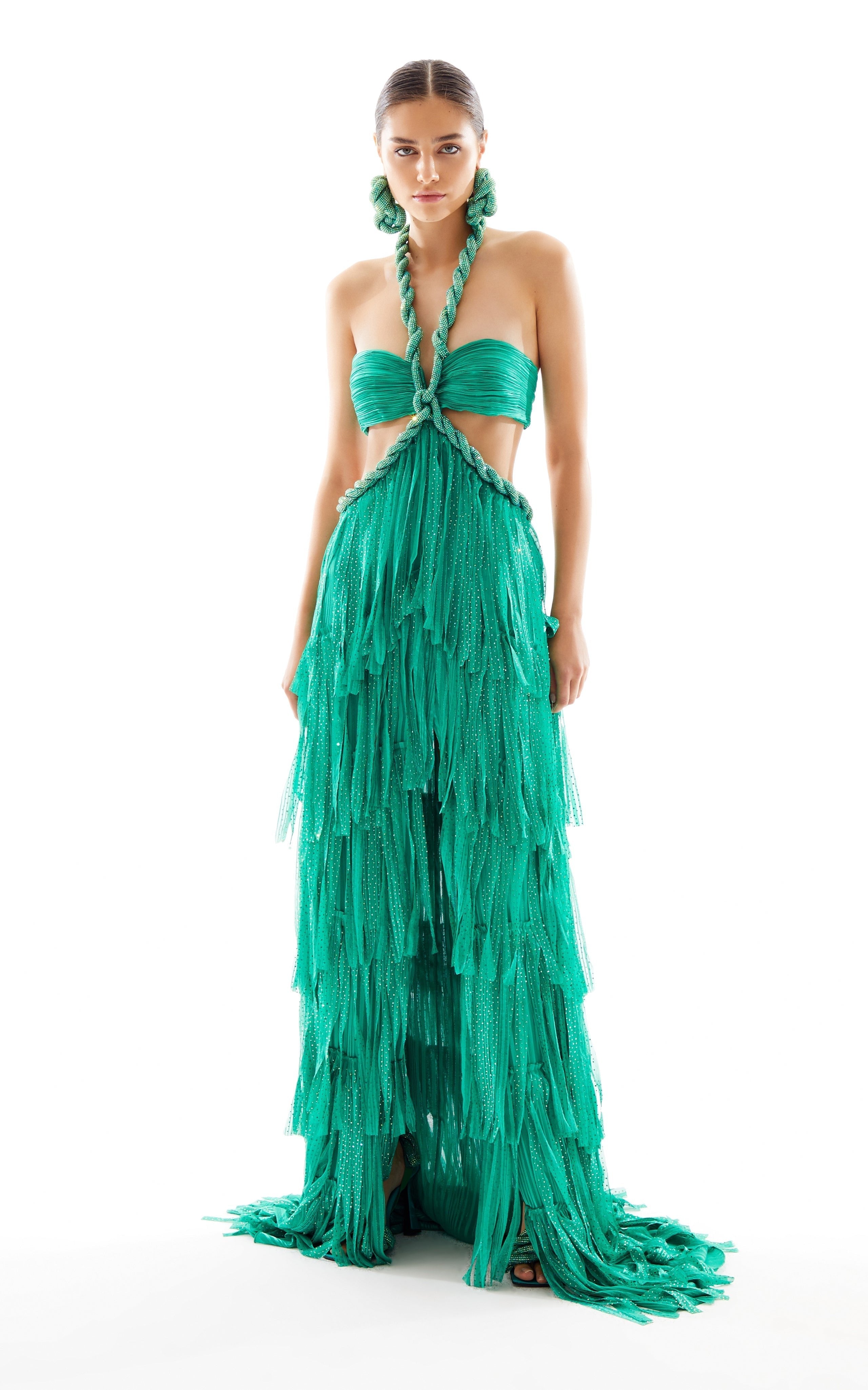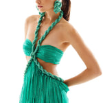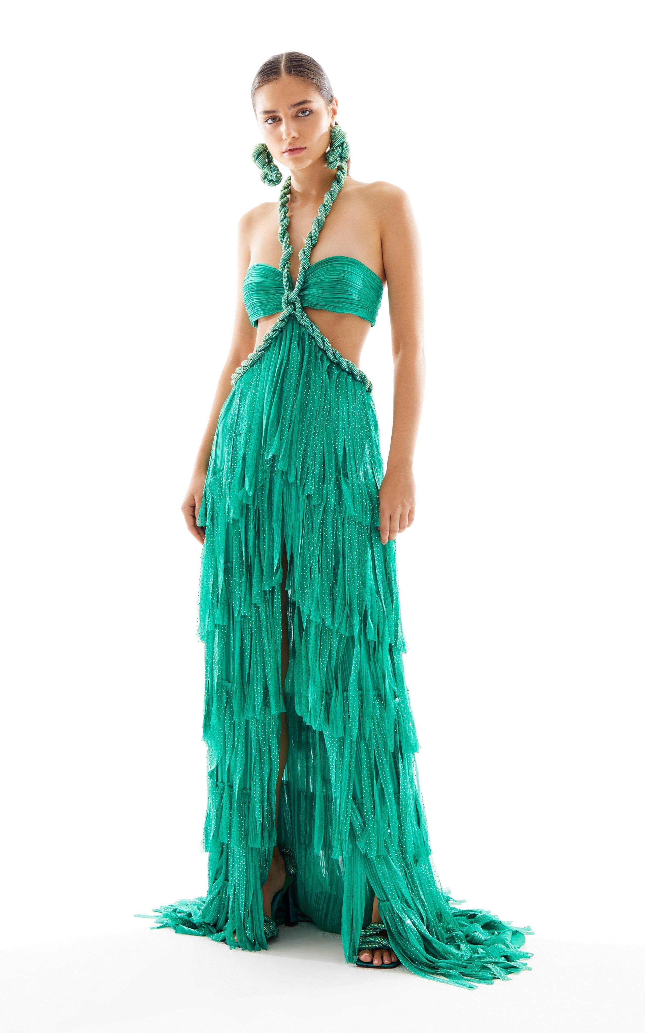 Crushed Chifffon Lazer Cut Maxi Dress with Cutout Details