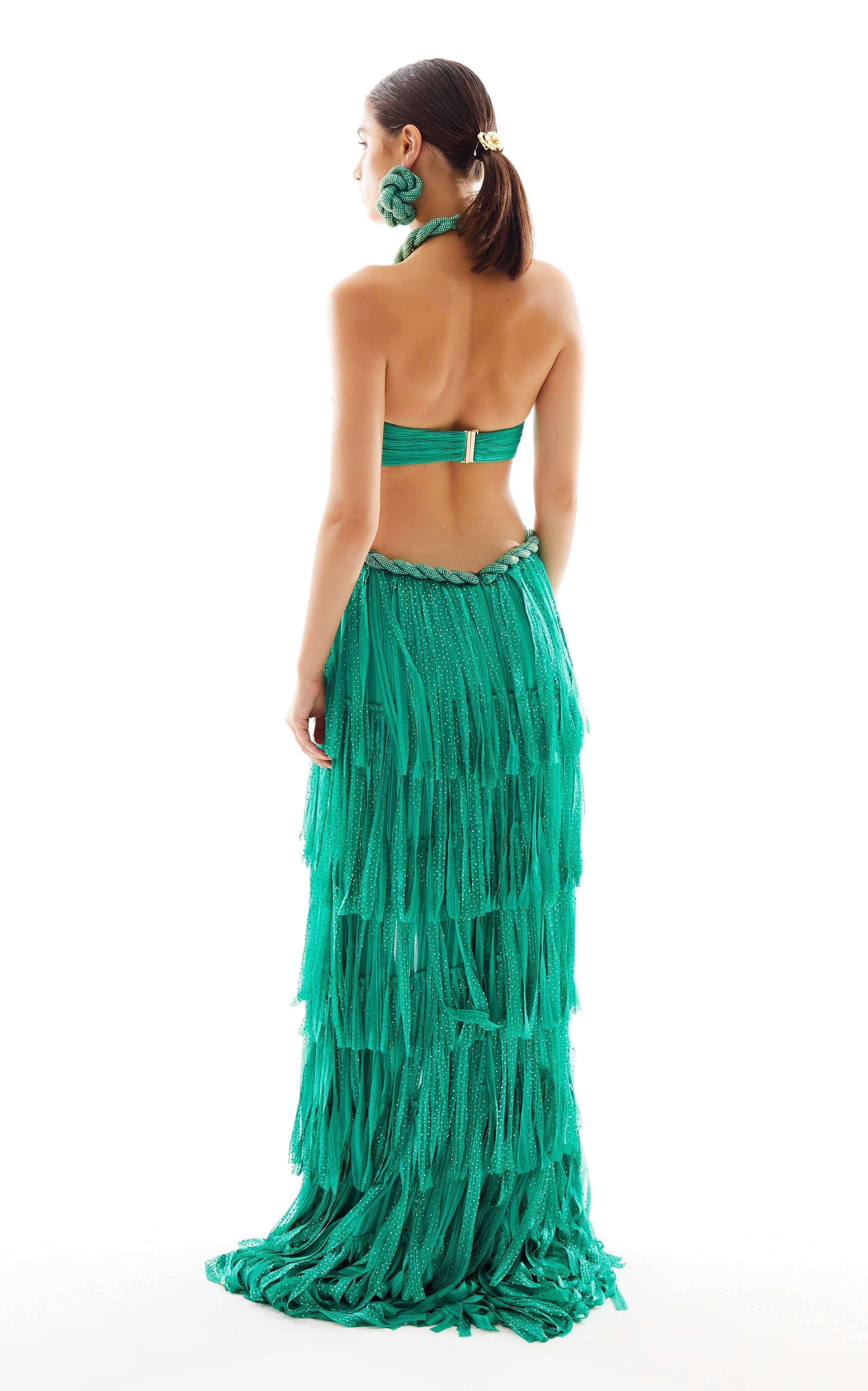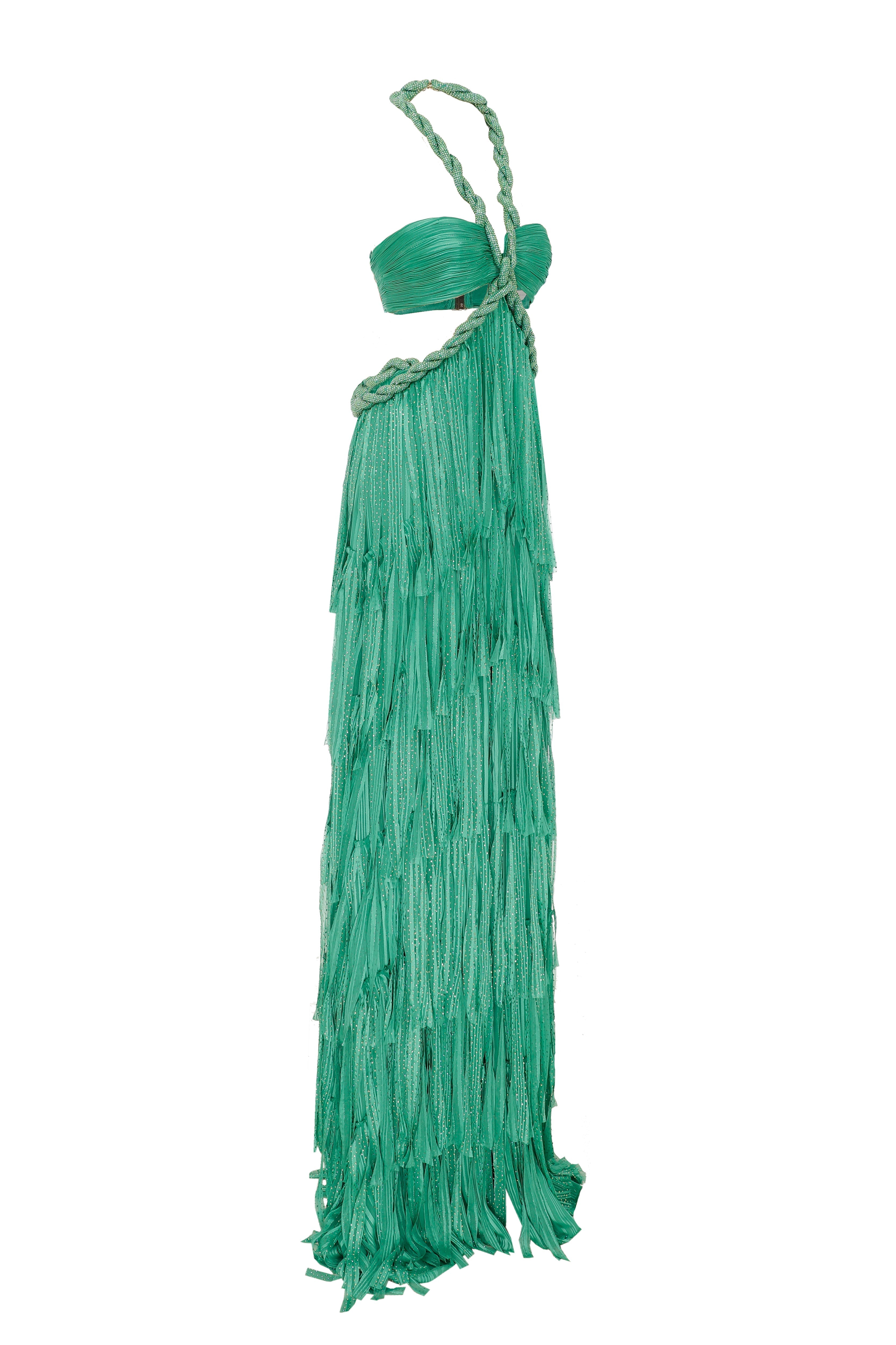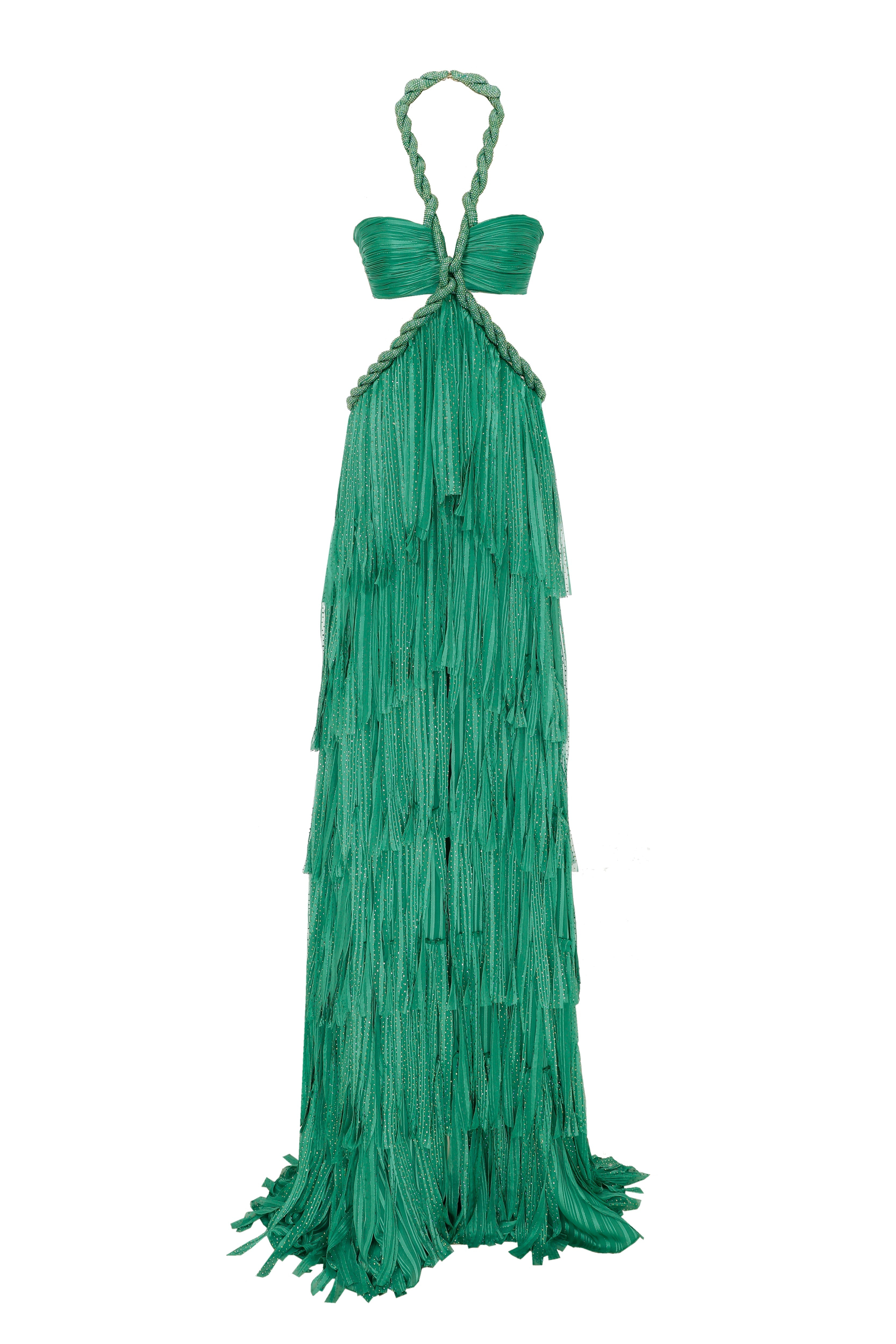 Crushed Chifffon Lazer Cut Maxi Dress with Cutout Details