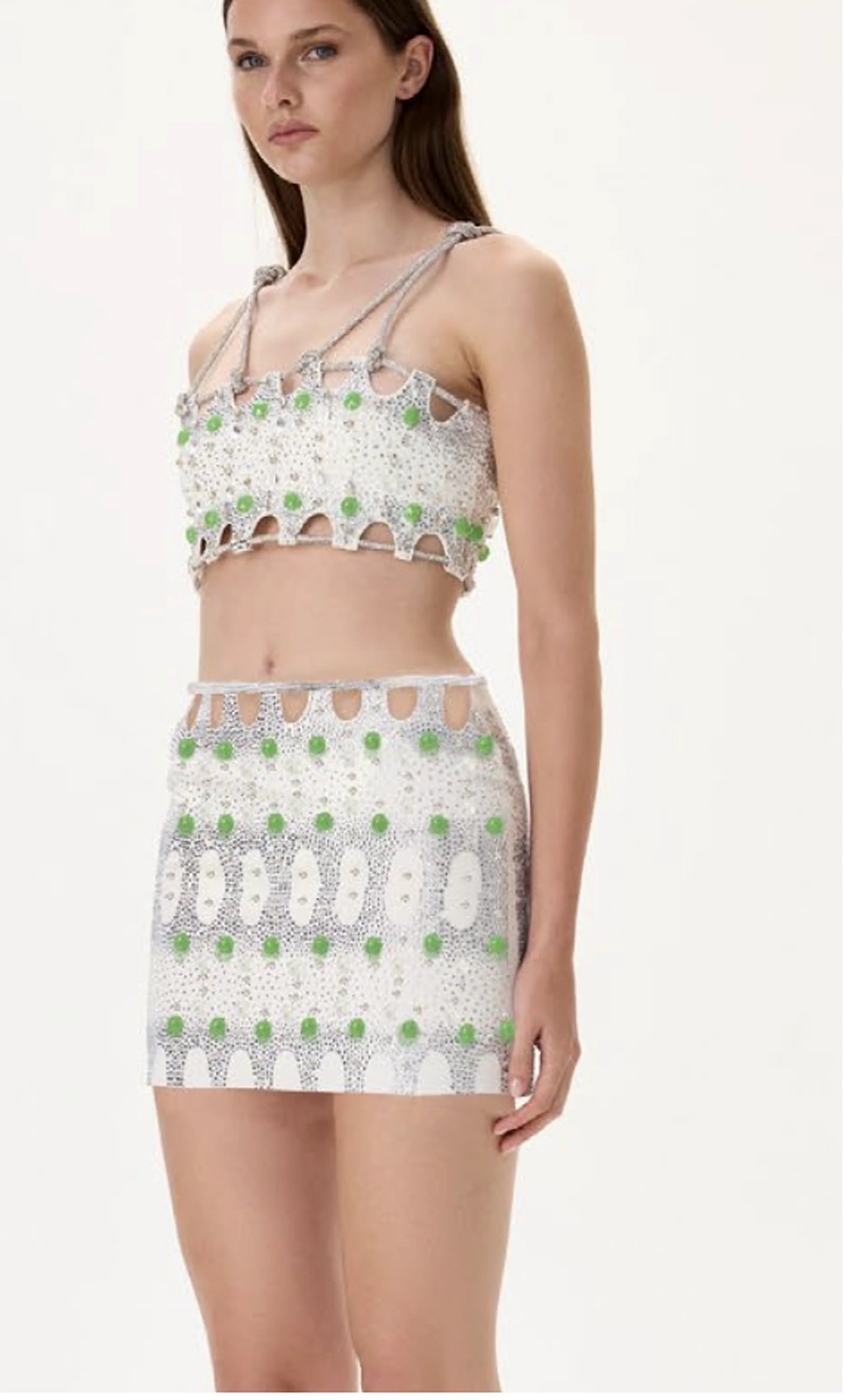 Crystal Printed Crop Top with Hand Embroidered Stones and Crystal Straps