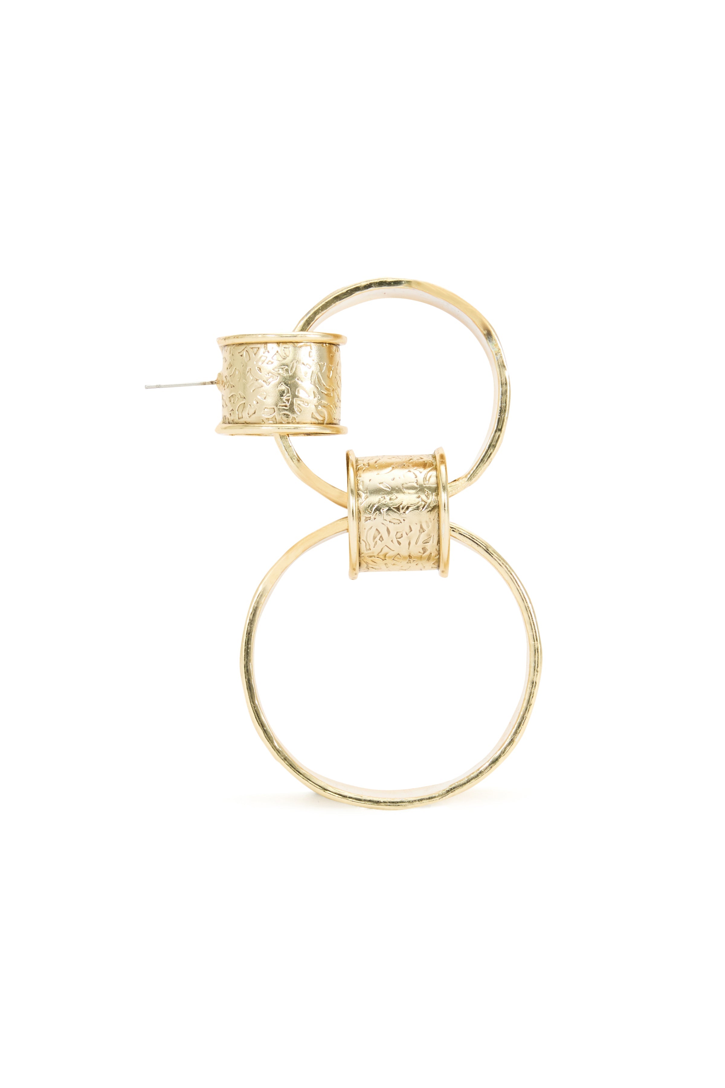 The gold metal chain earrings offer a sleek, modern design with a bold, edgy appeal. Perfect for adding a touch of sophistication and statement style to any look.