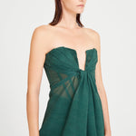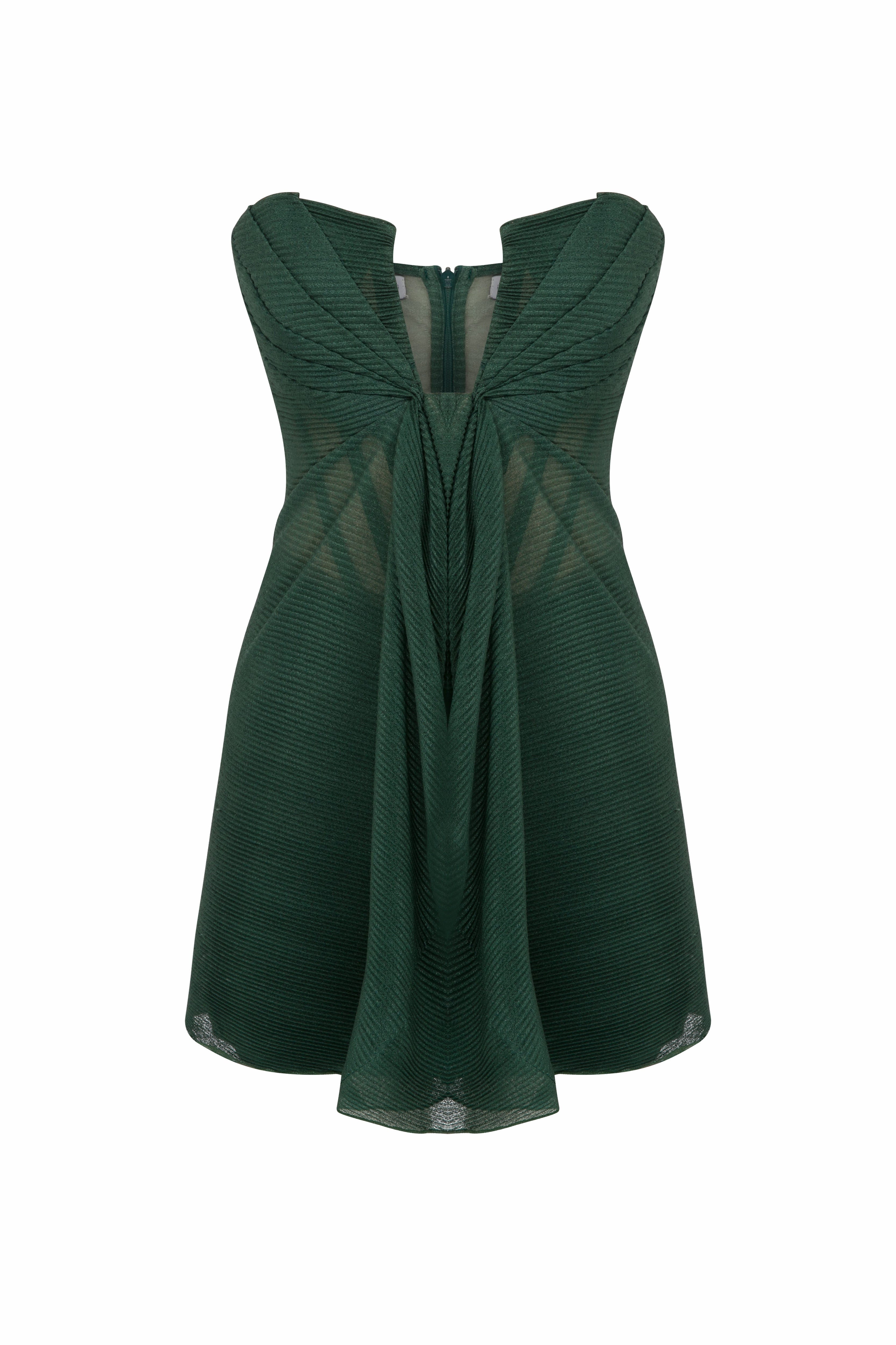 Strapless Baloon Mini Dress With Deep V Cut And See-Through Waist Details