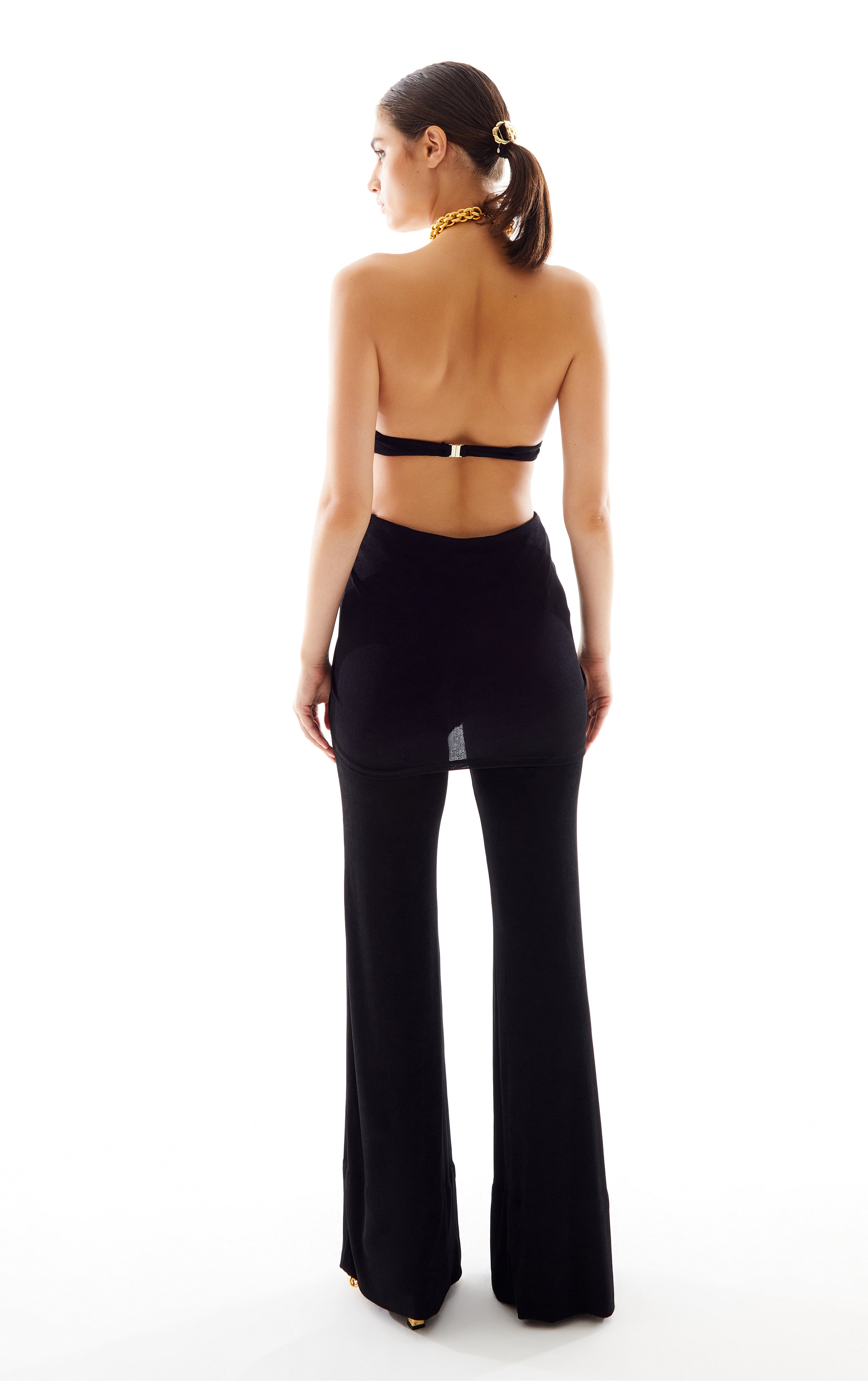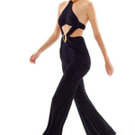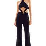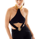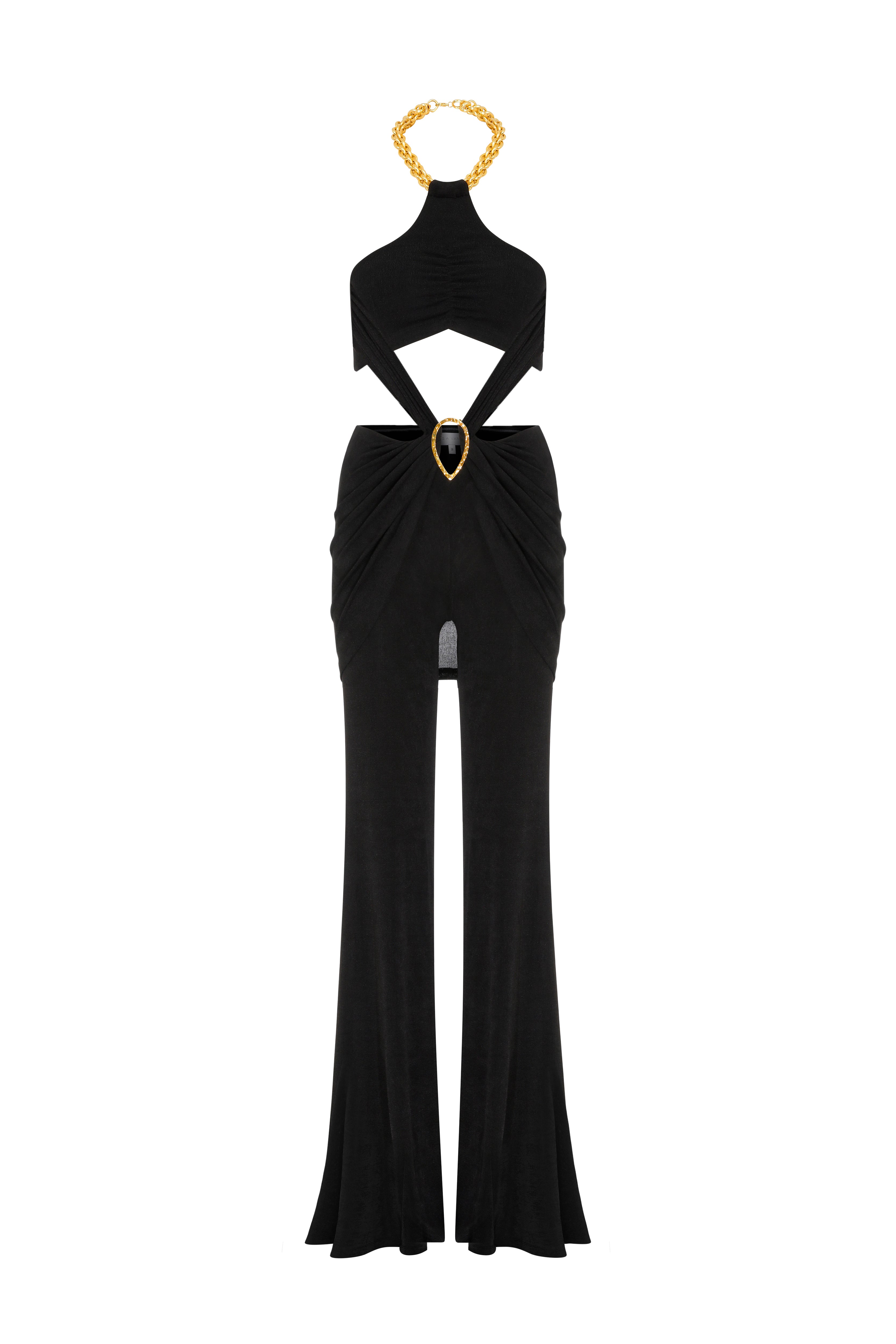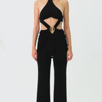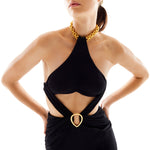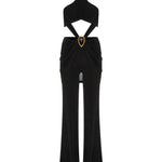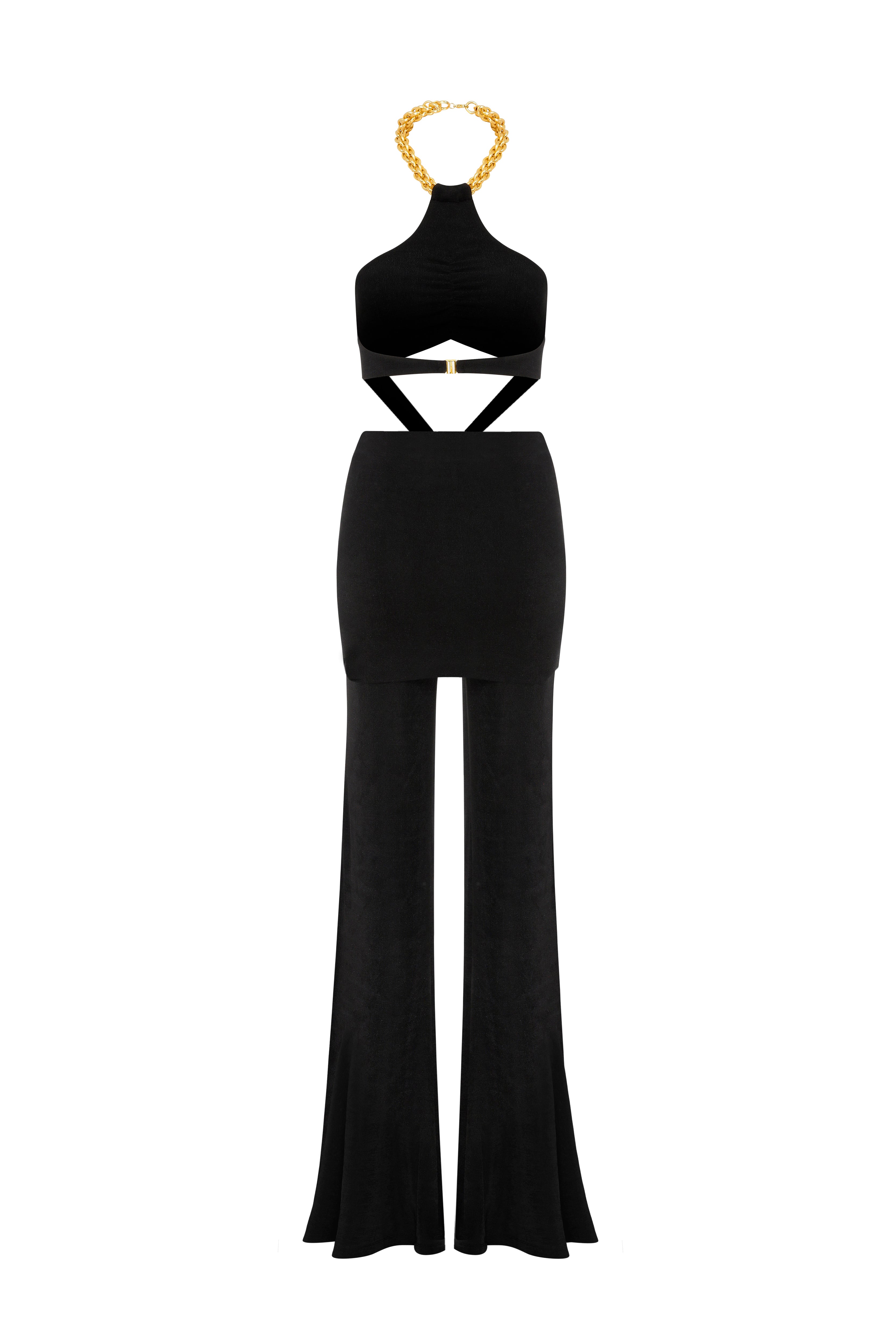 Halter Neck Buzi Skirt Pant Jumpsuit with Gold Chain