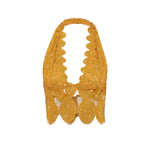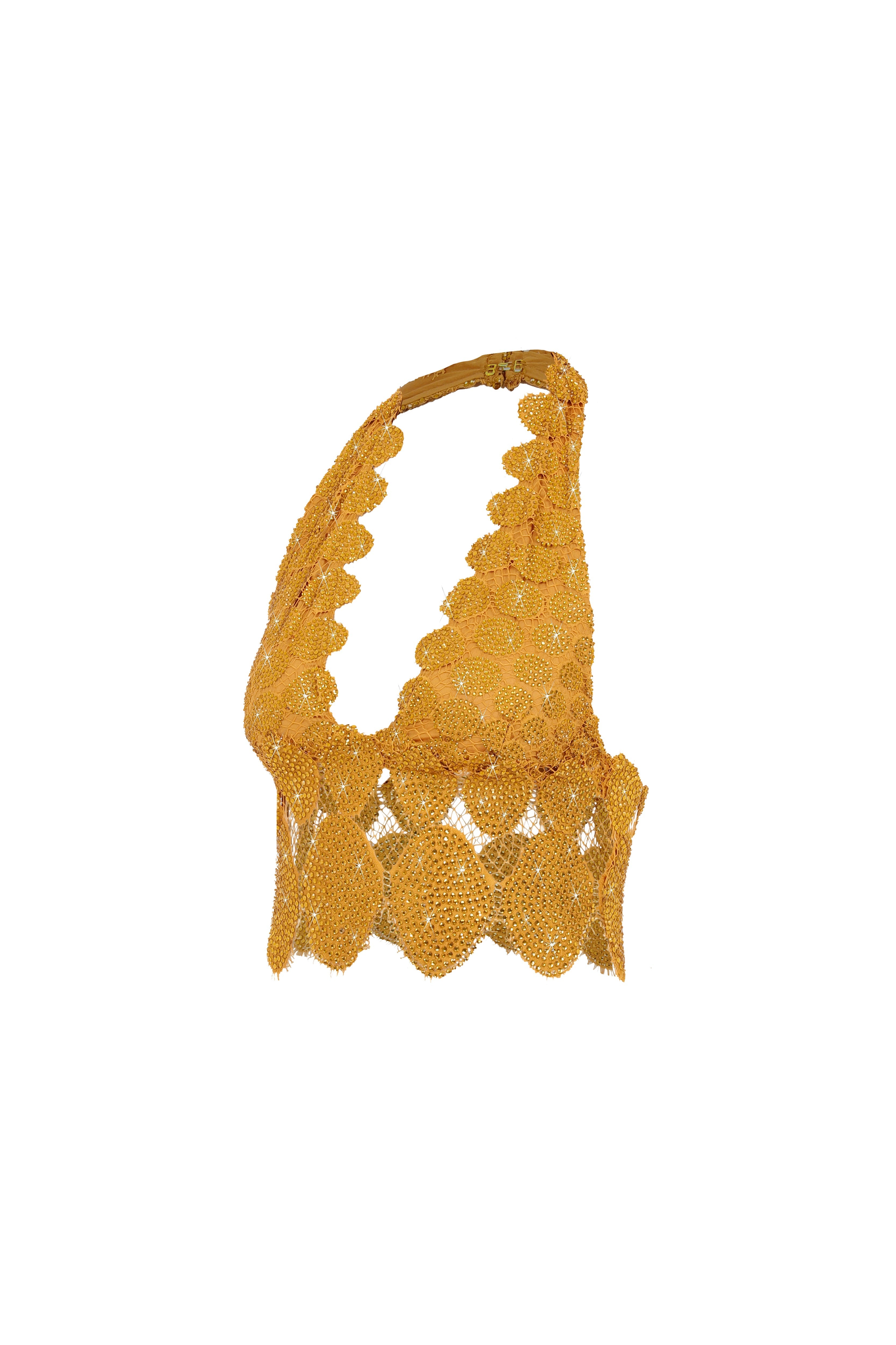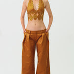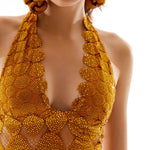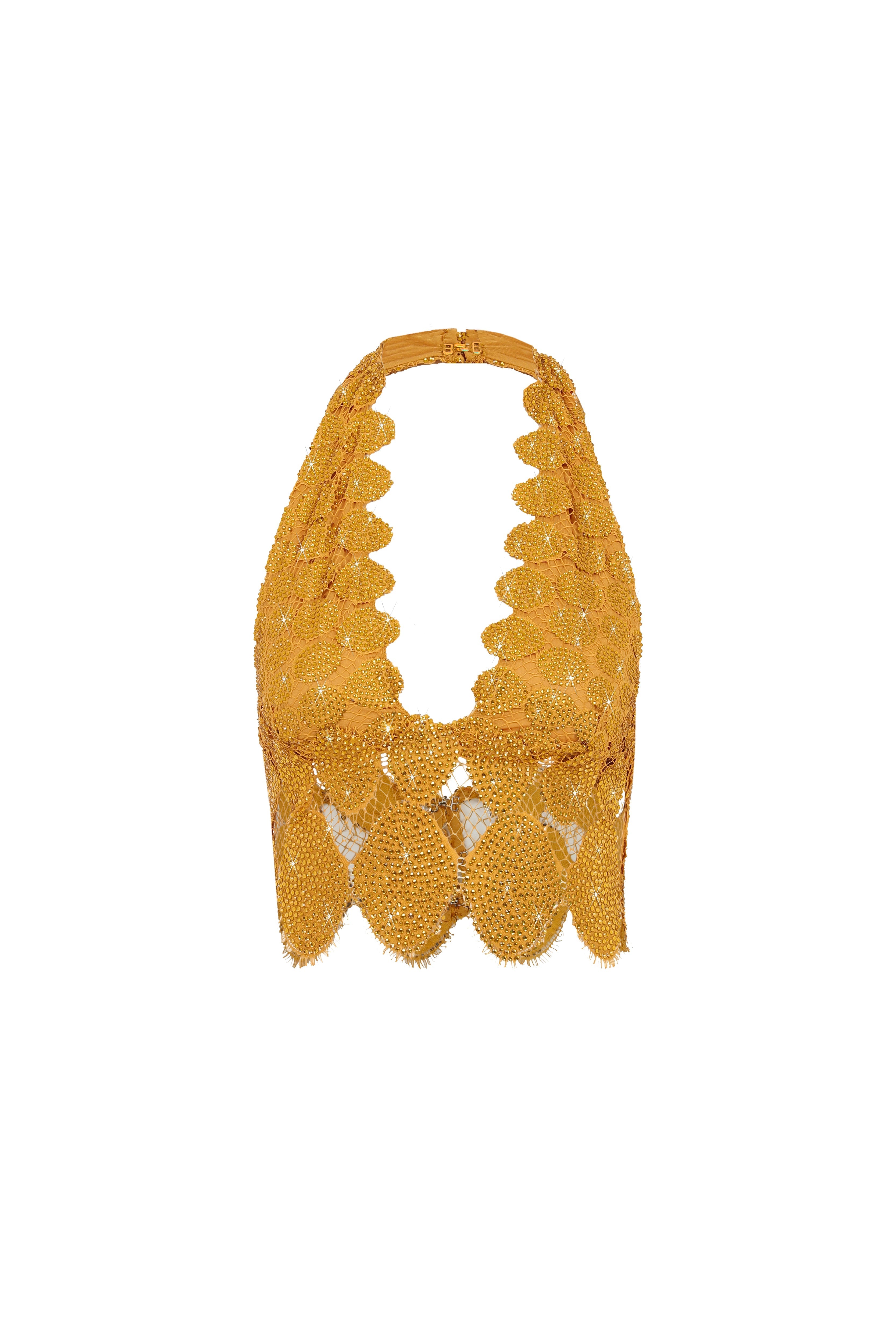 This crop top, which has a deep neckline detail and back detail, offers an extraordinary look with its glittering details.