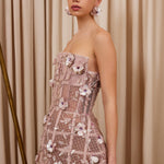 Handmade 3D Flower Embroidered Baby Pink Corset Mini Dress