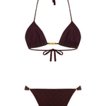 Knitted Burgundy Draped Bikini Set With Gold Metal Beads