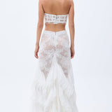 Laser Cut Chiffon Frill Detailed White Guipure Maxi Skirt