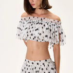 Laser Cut Polka Dot Chiffon Elasticated Crop Top
