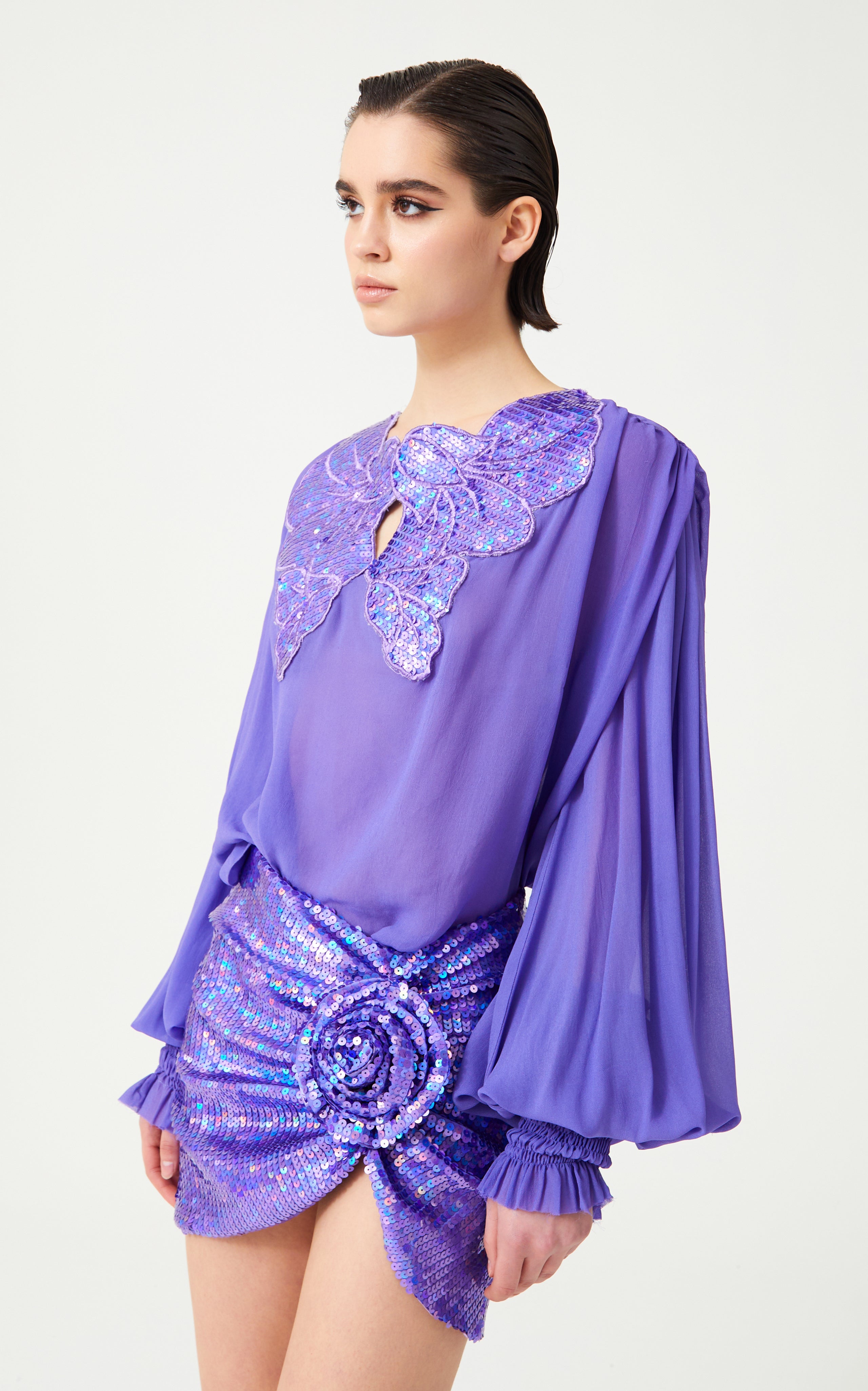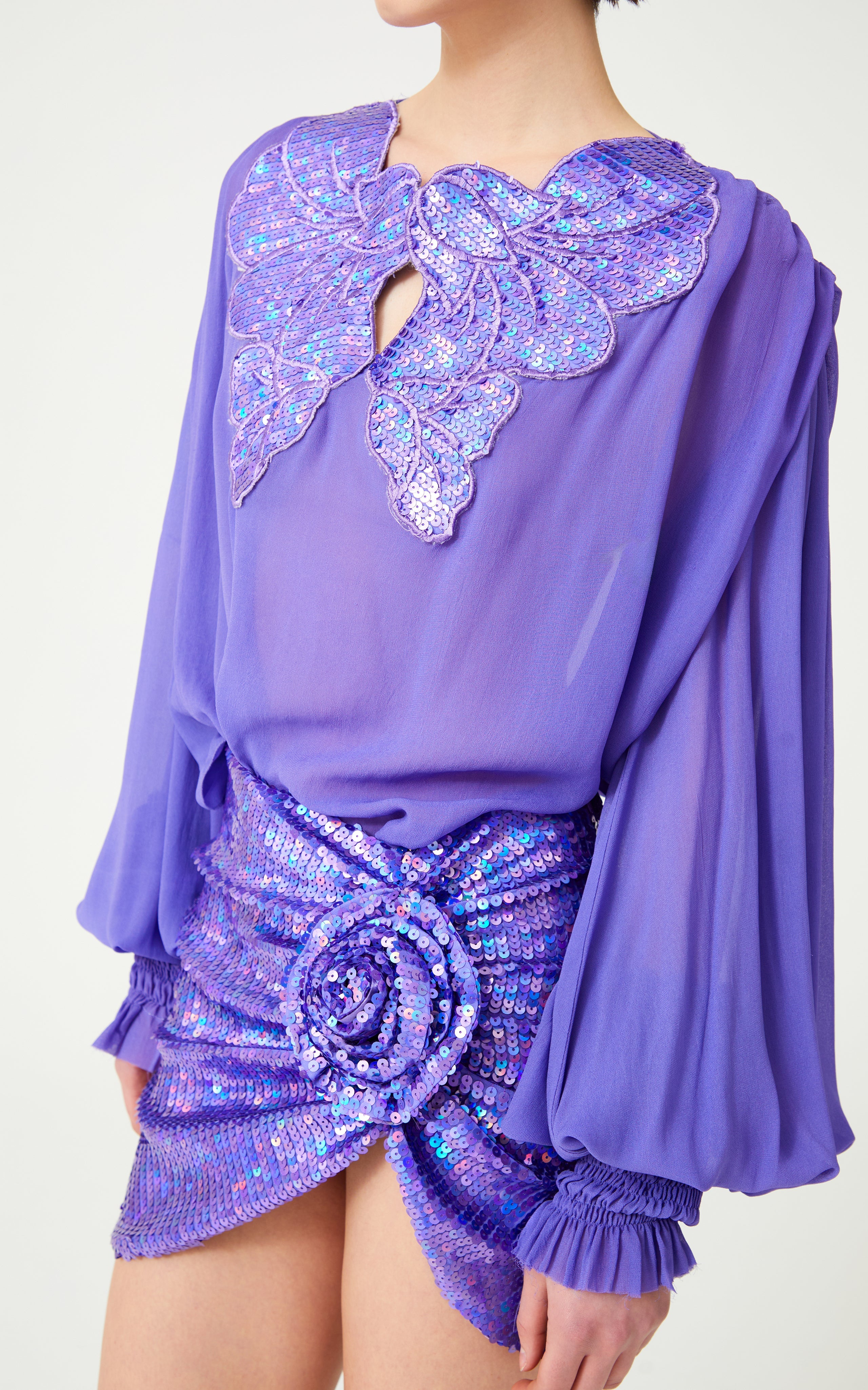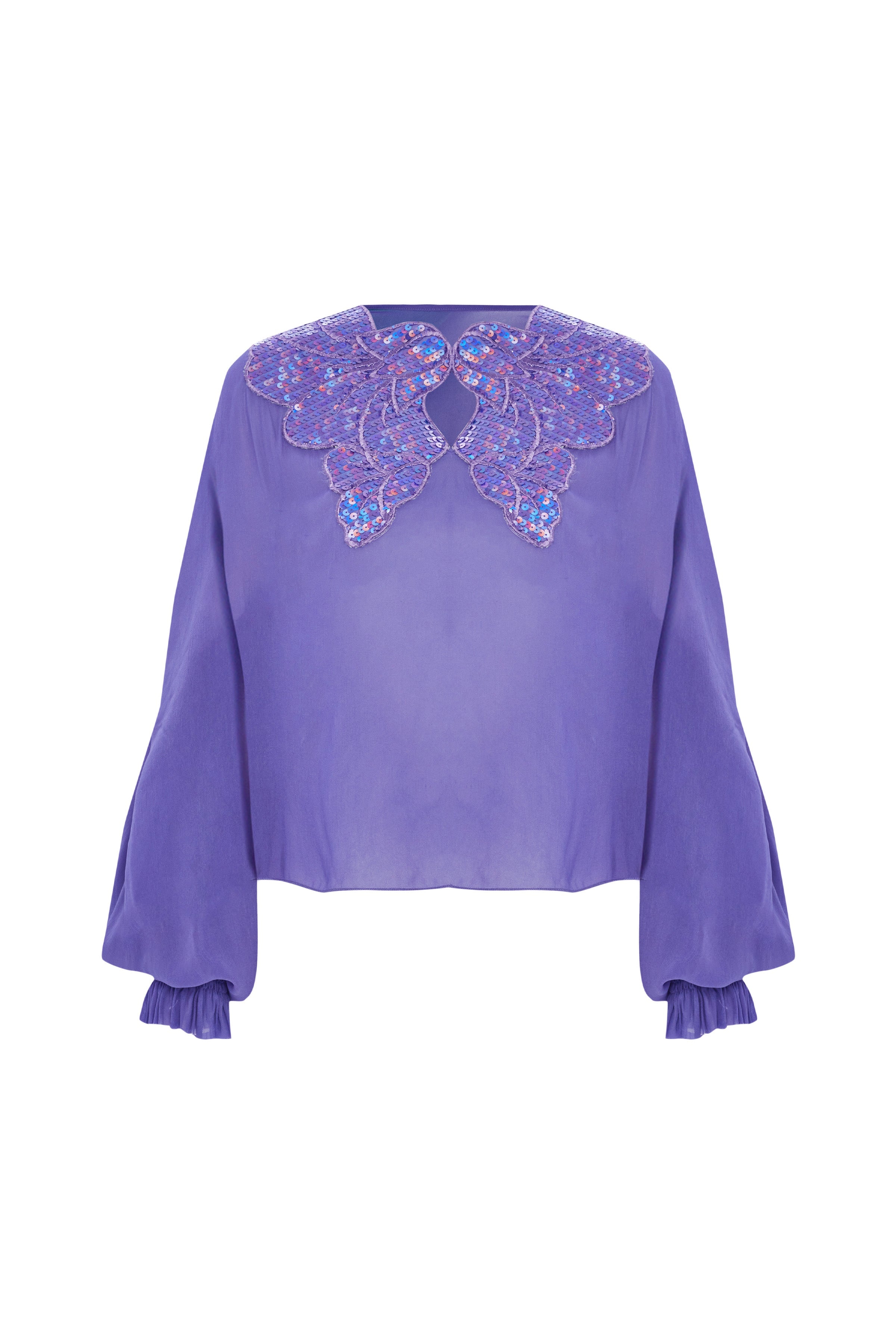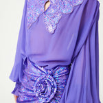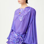 Lilac Silk Chiffon Shirt With Sequin Embroidered Collar