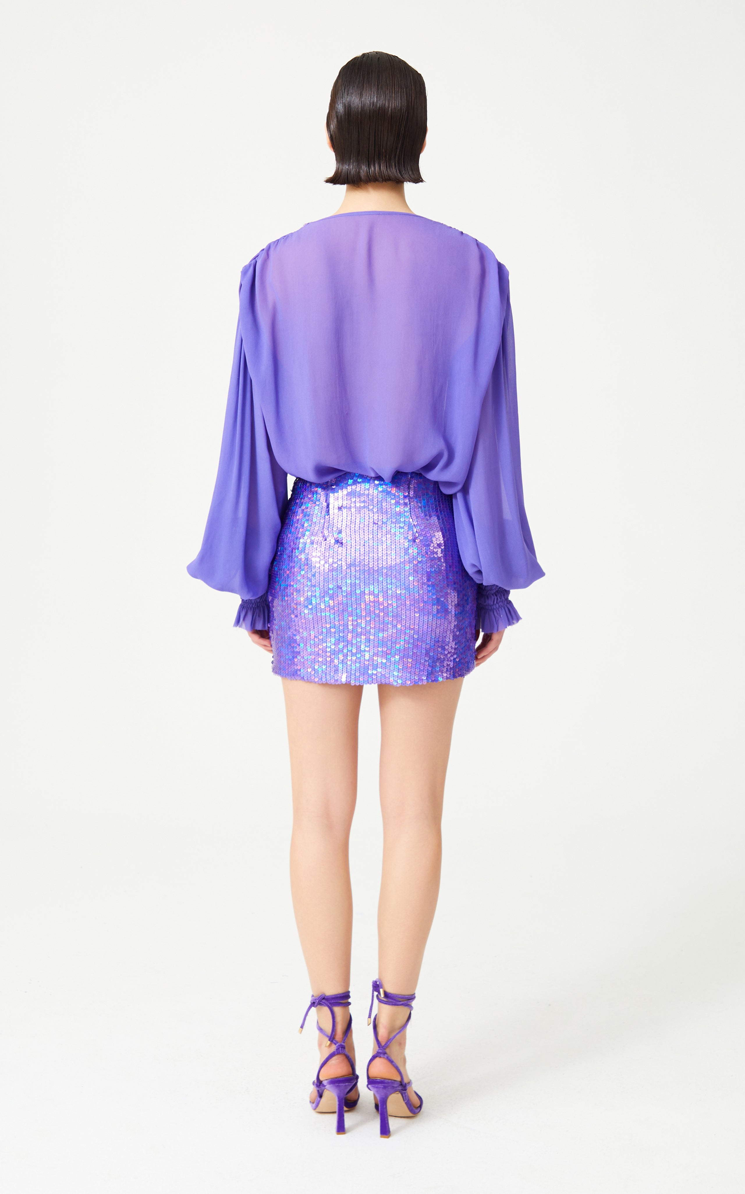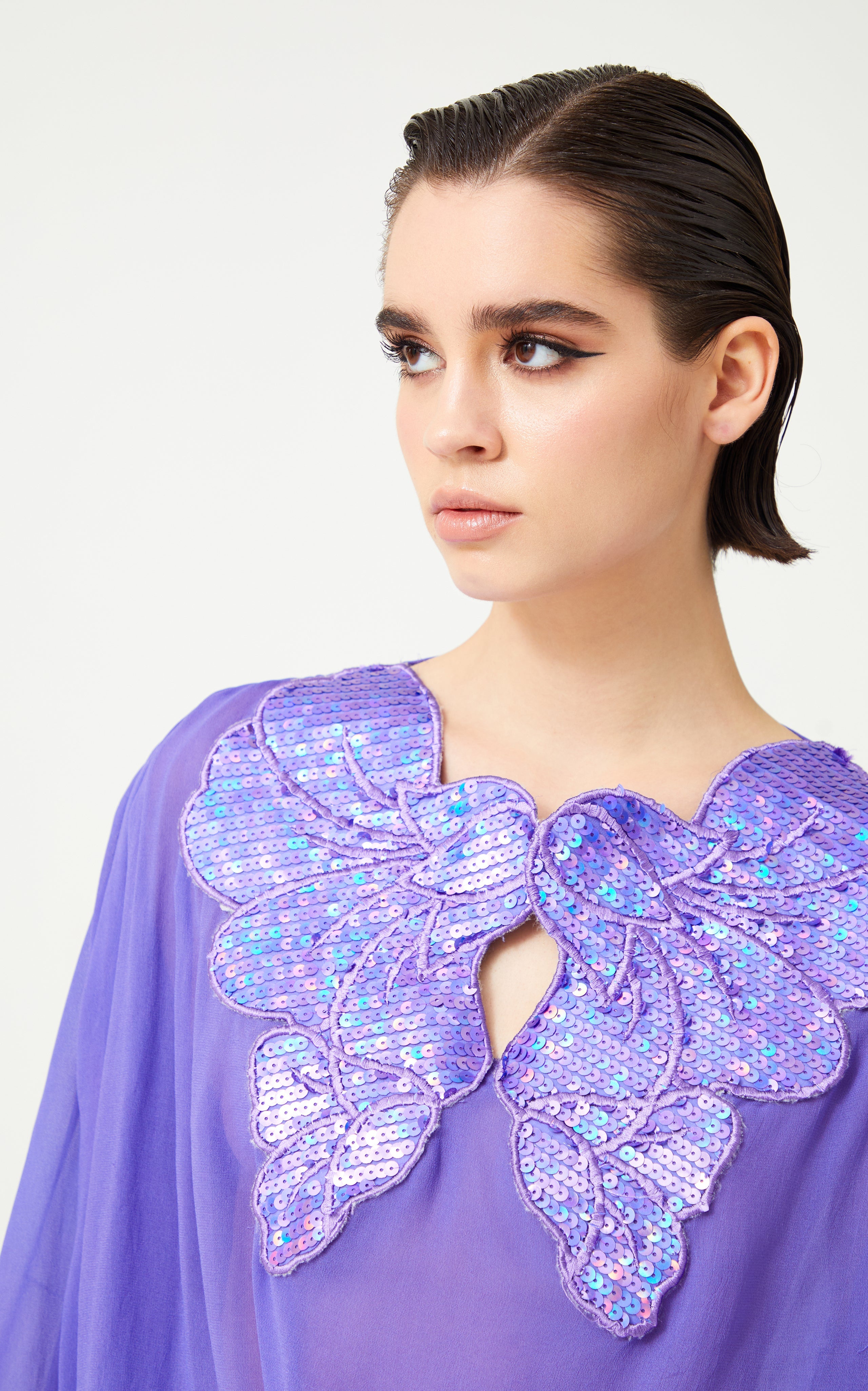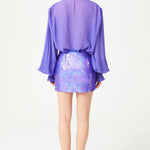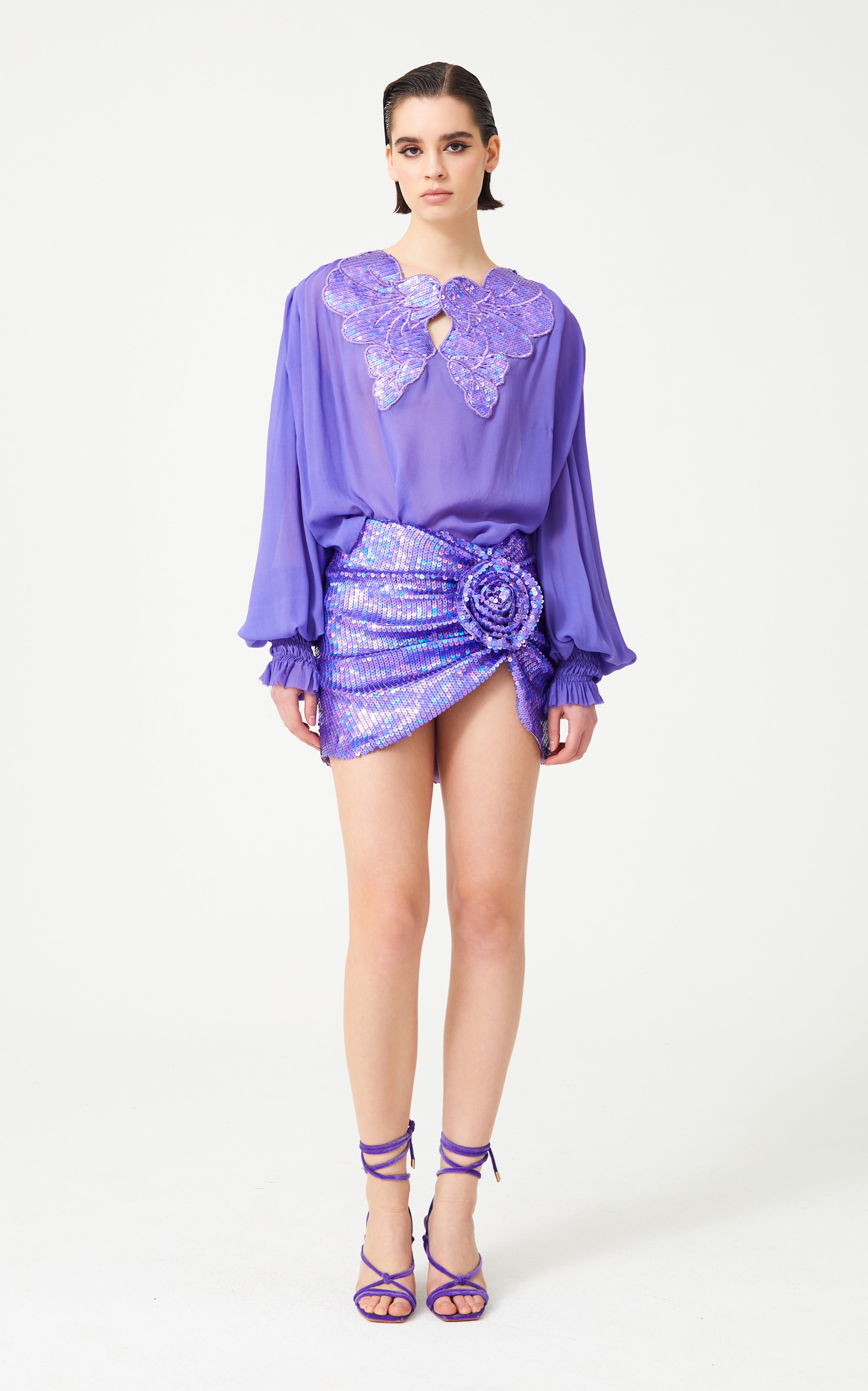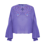 Lilac Silk Chiffon Shirt With Sequin Embroidered Collar