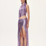 Metallic Violet Armor Asymmetrical Midi Skirt