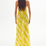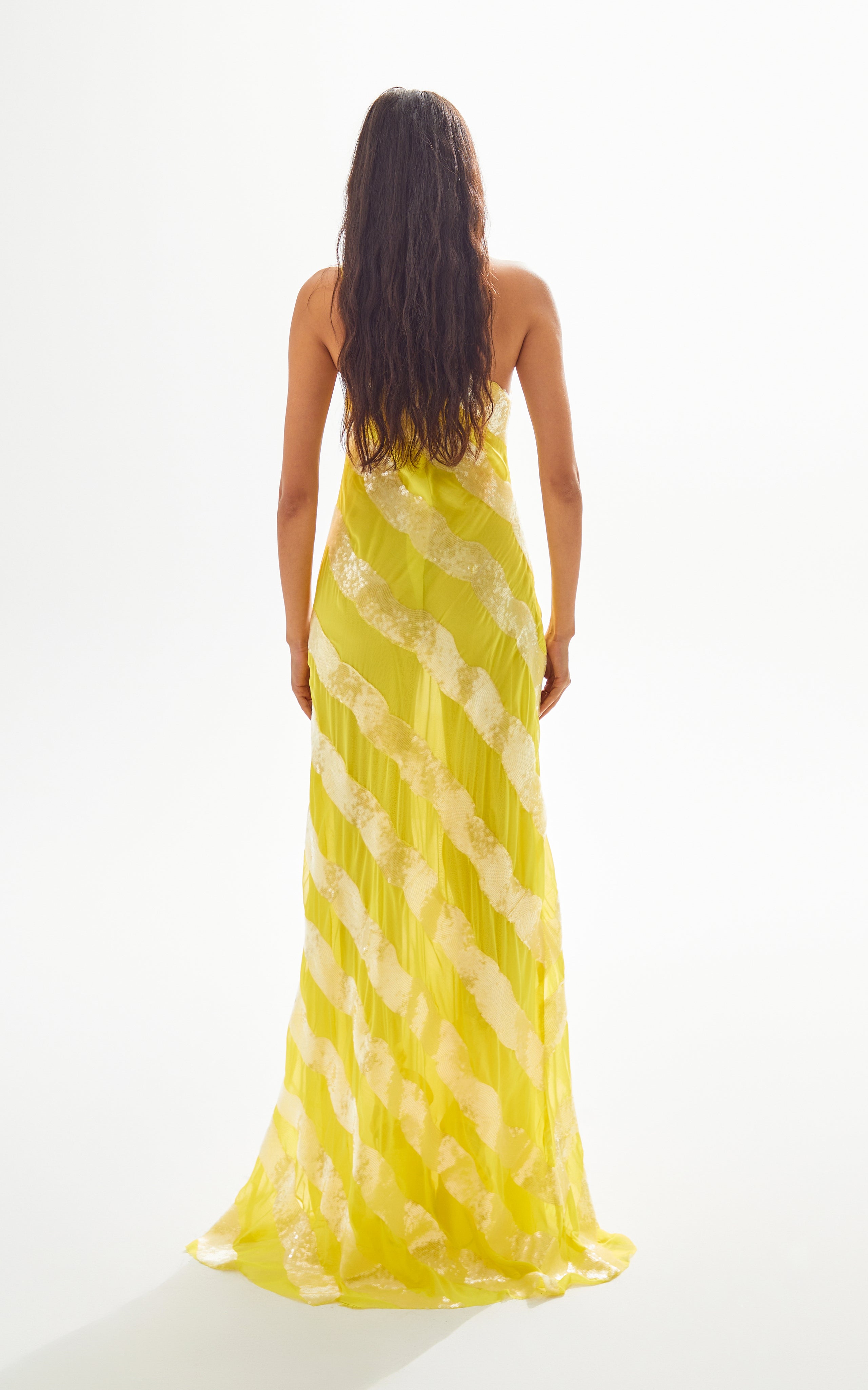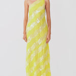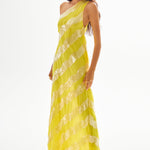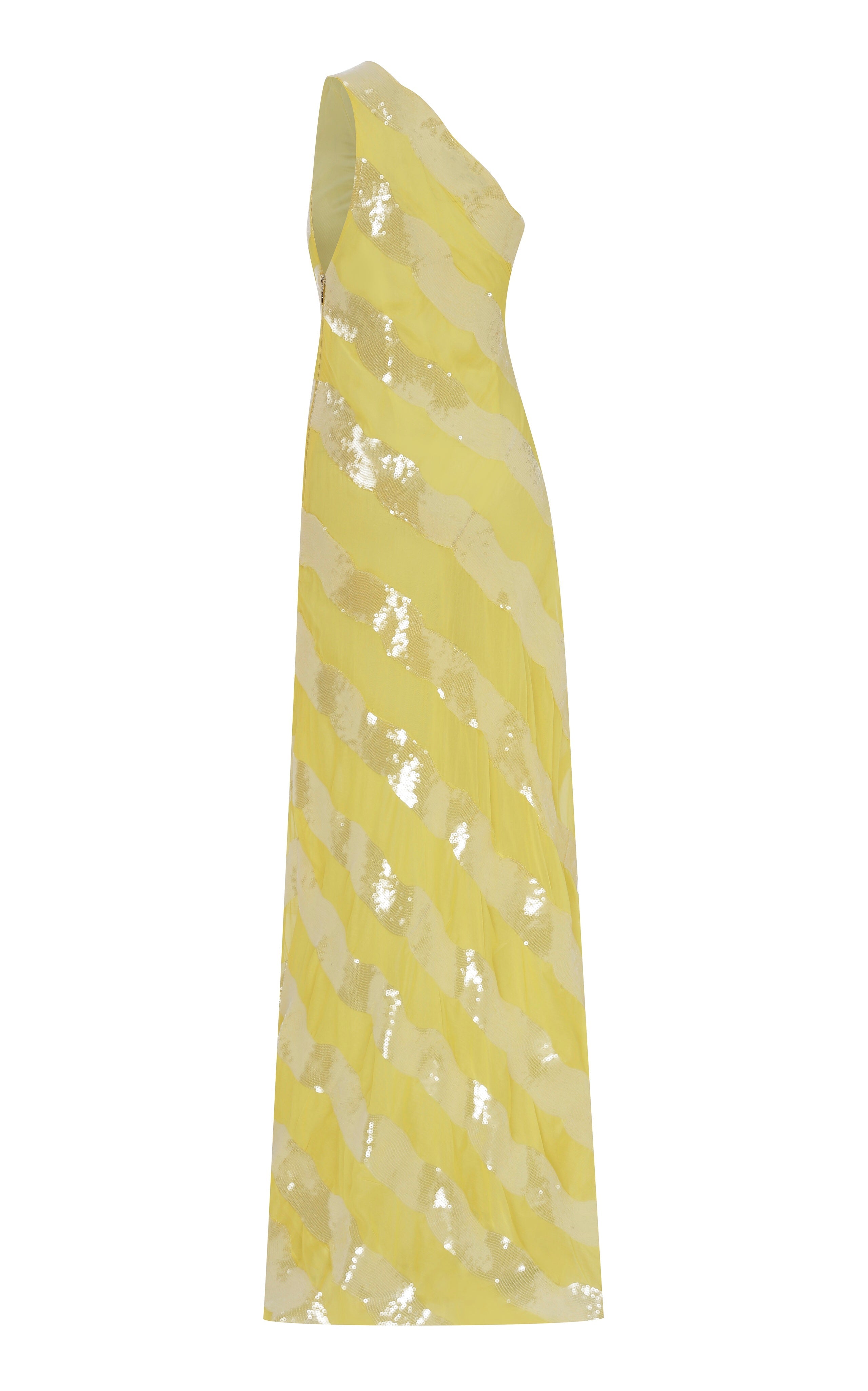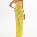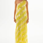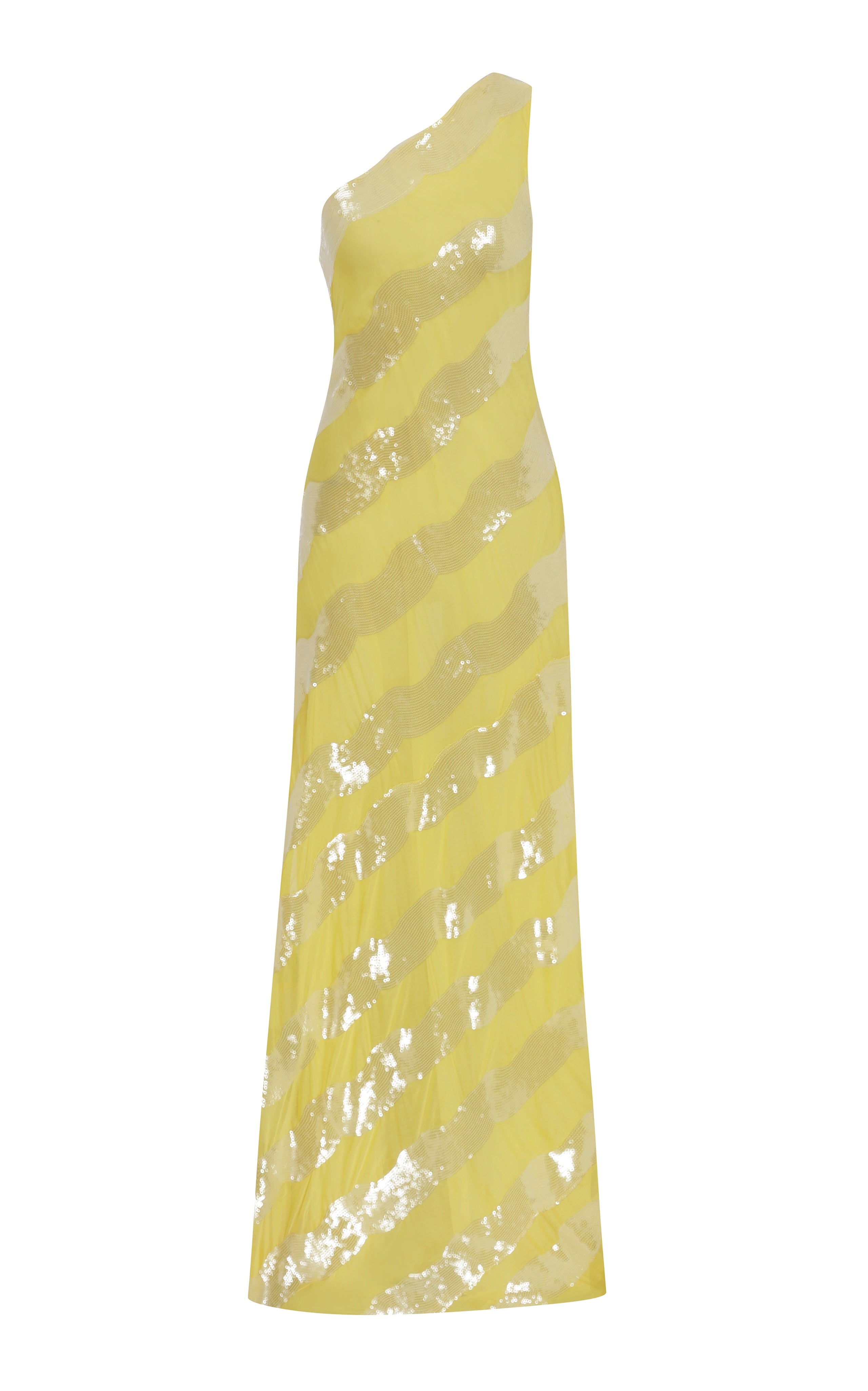 One Shoulder Lemon Maxi Dress with Patterned Sequin Details