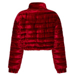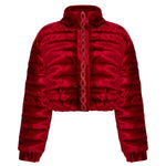 Red Velvet Puff Coat with Crystal Detail