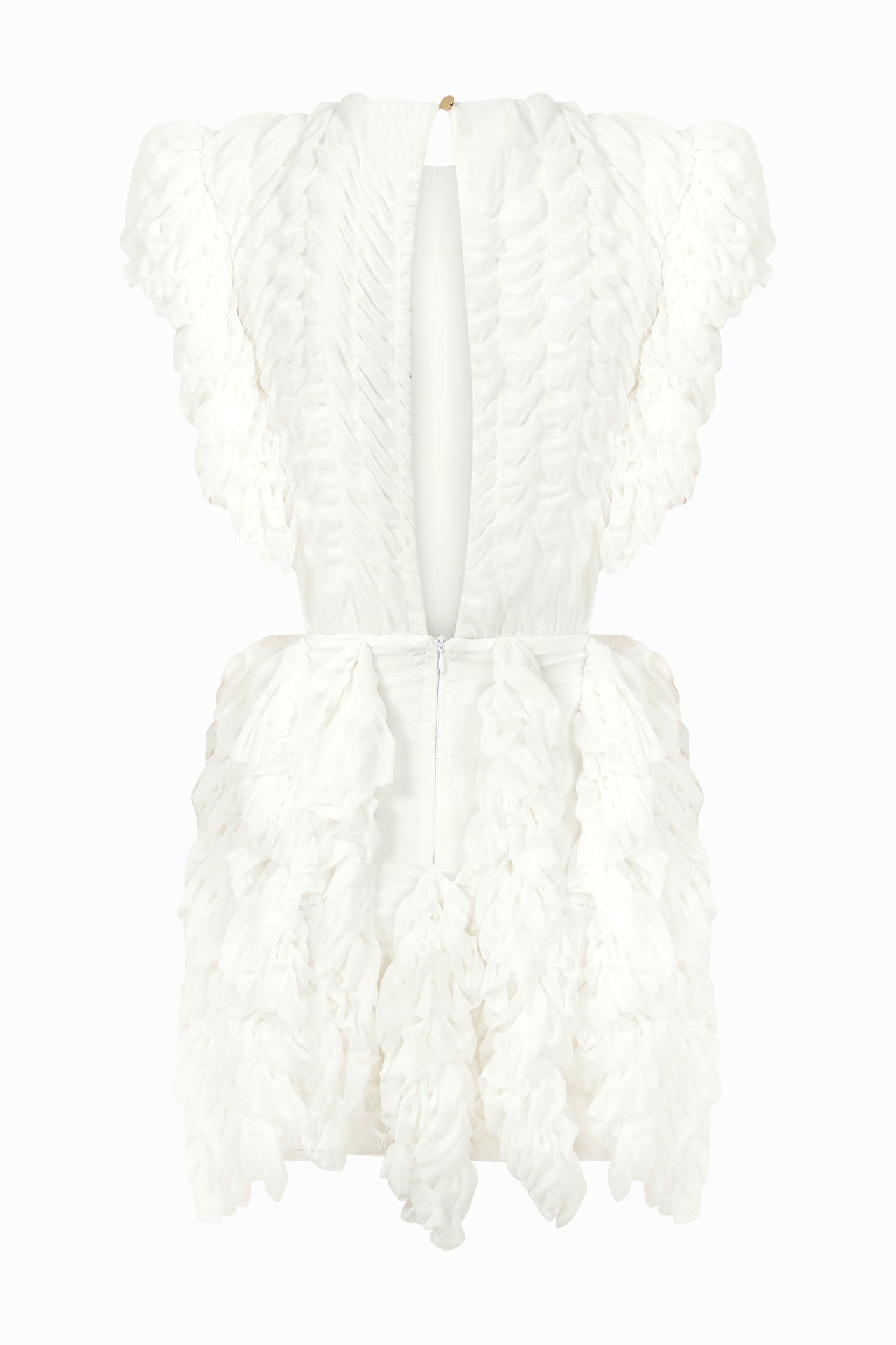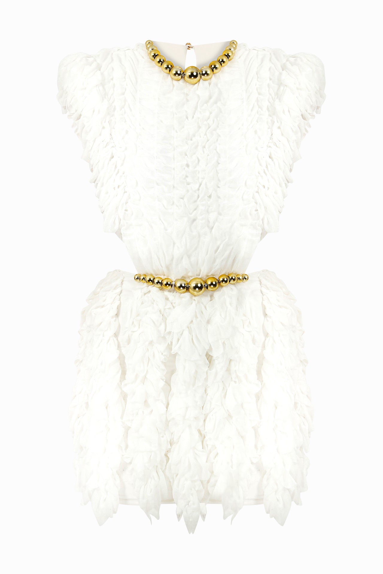 Round Neck Ruffled Mini Dress With Cut Out Details