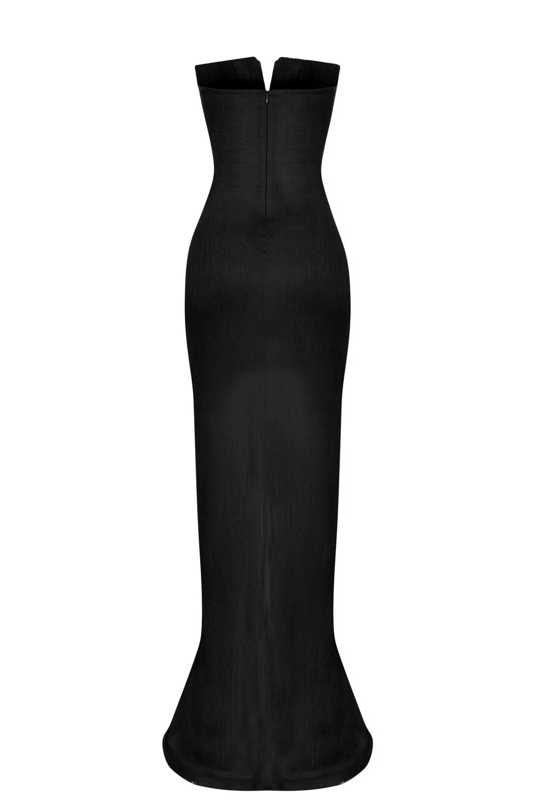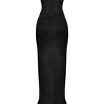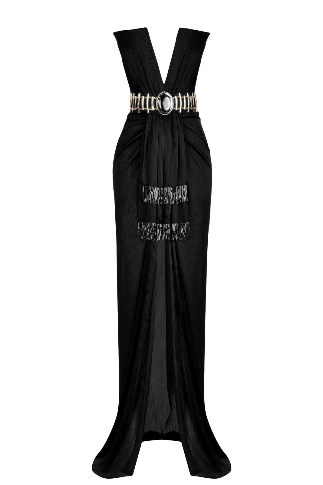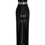 Satin Deep V Neck Strapless Maxi Dress With Gold Belt