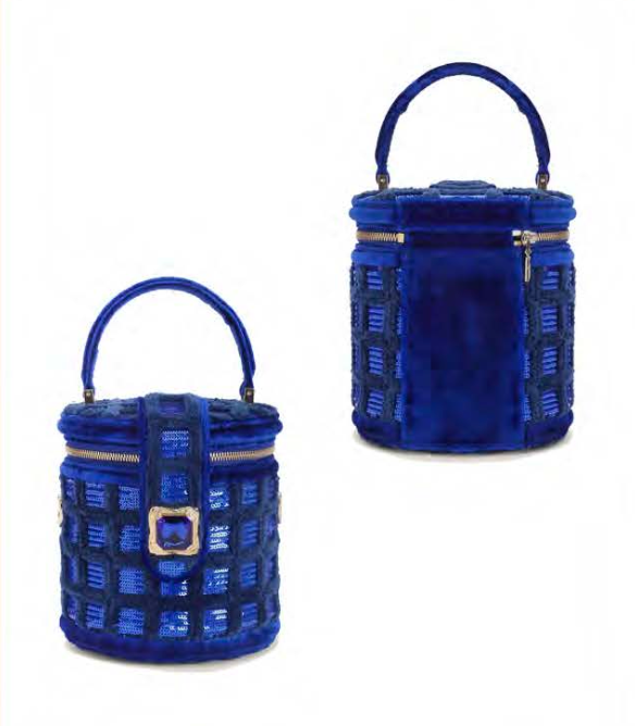 A dazzling bucket silhouette, richly adorned with shimmering sequins and finished with a structured top handle, a statement piece that captures effortless glamour.