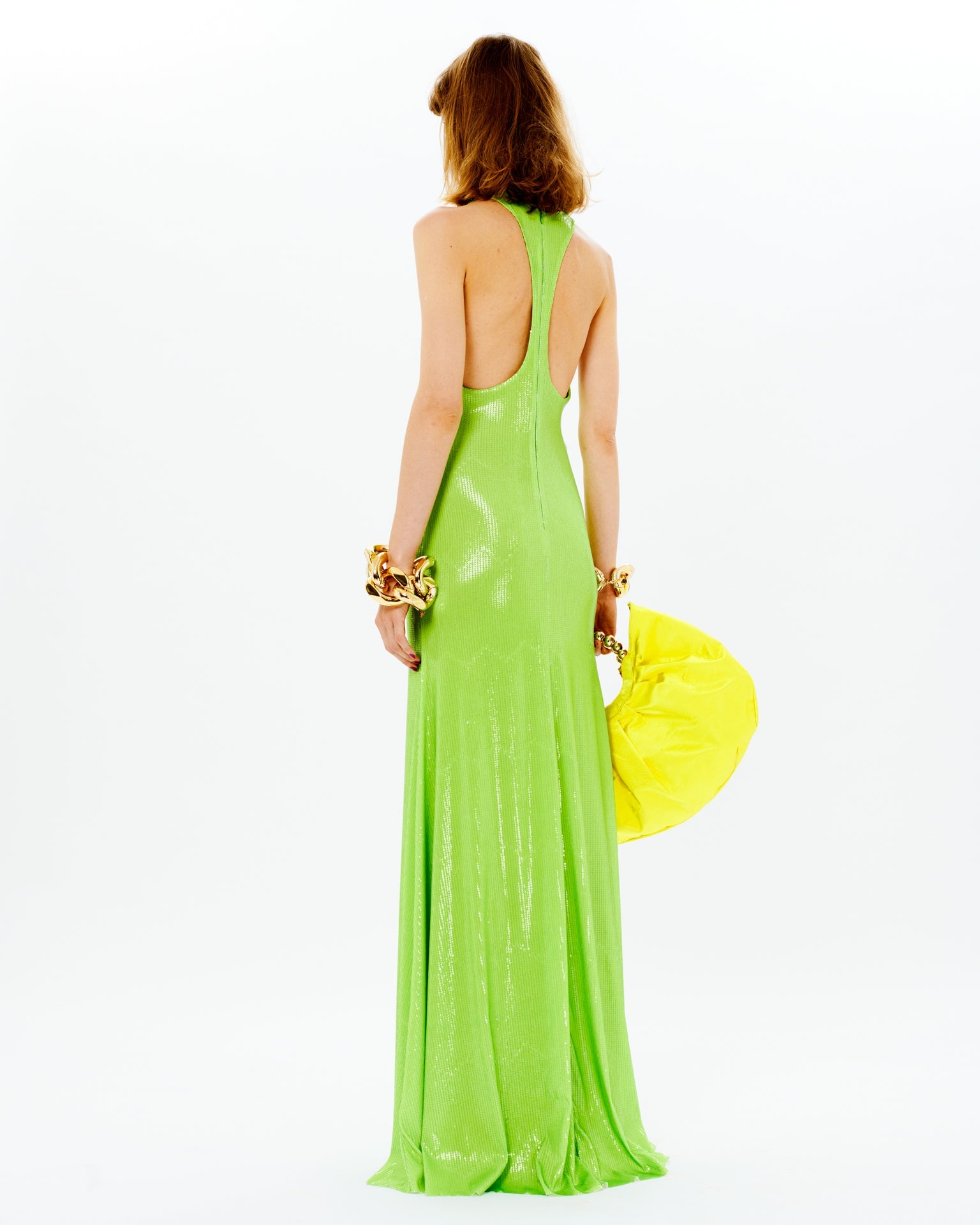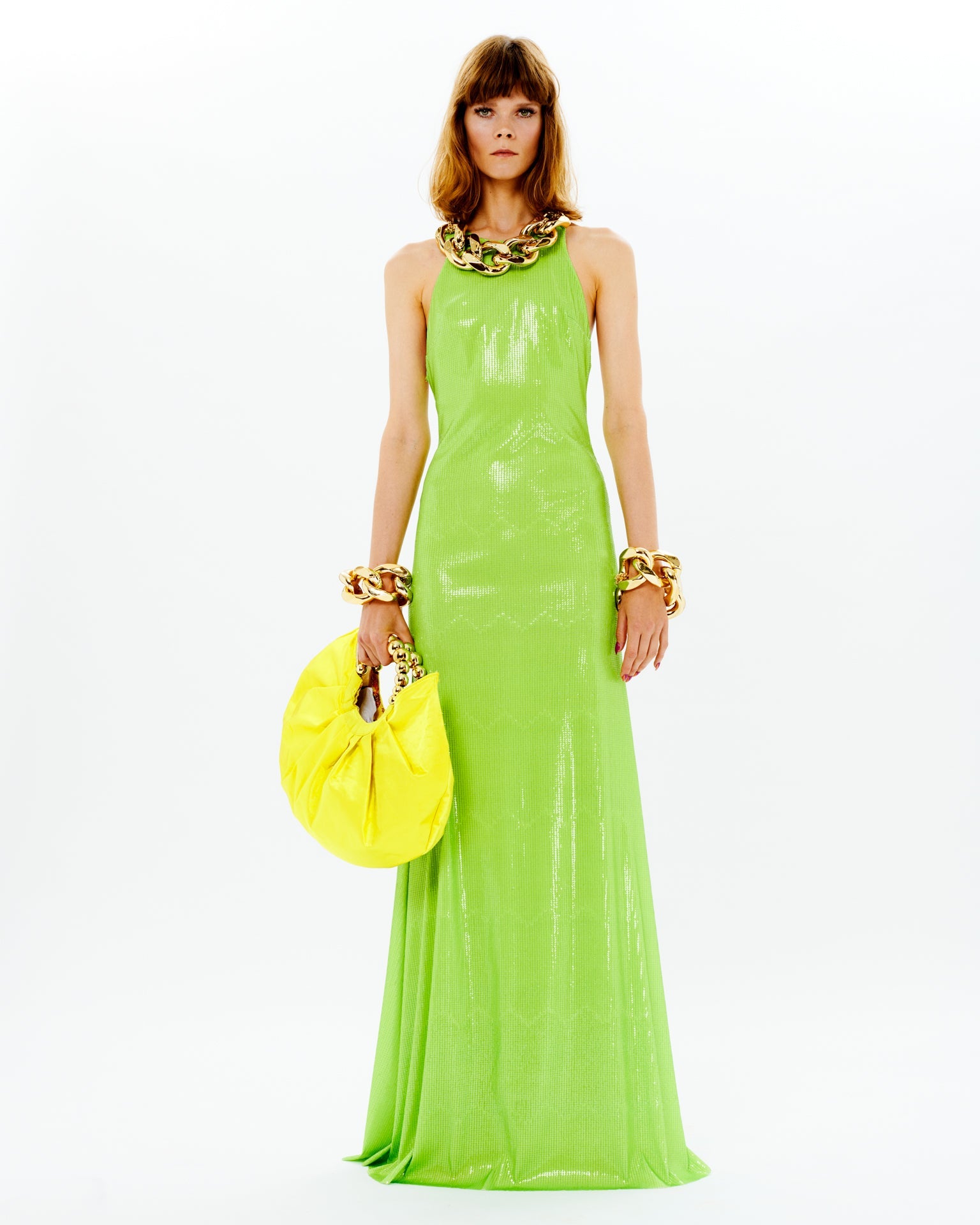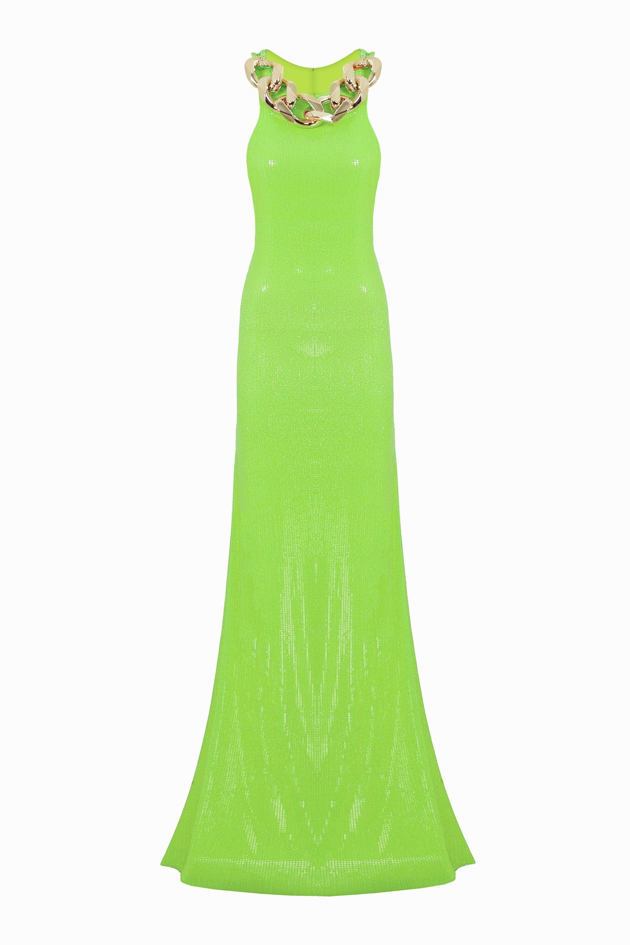 Sequined Halter Neck Maxi Dress With Chain Detail