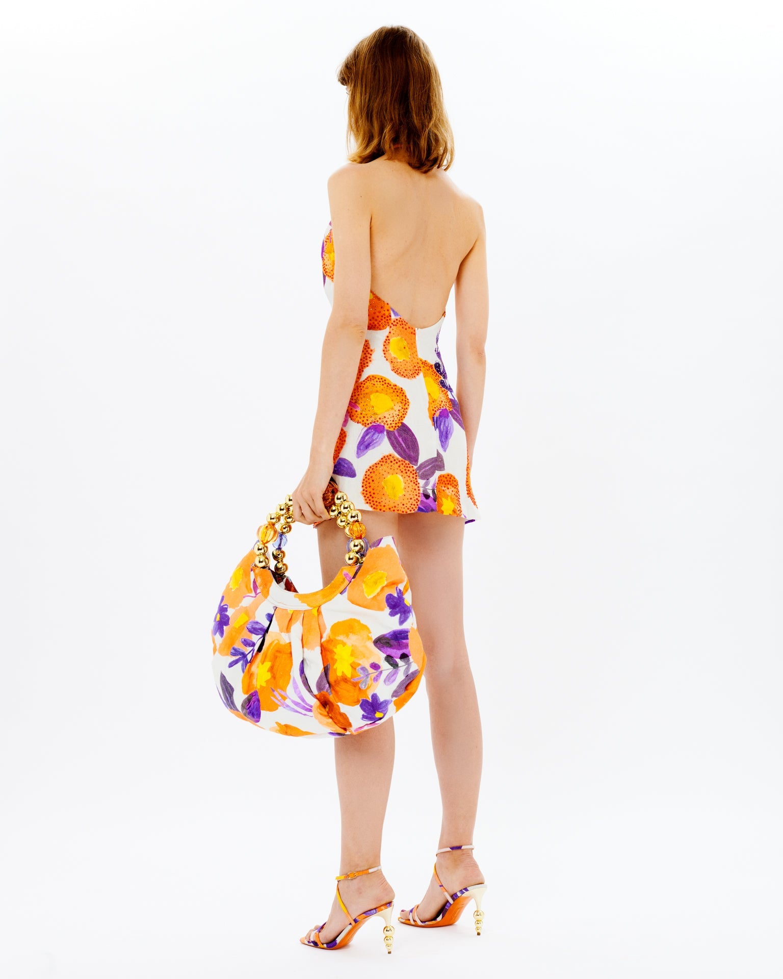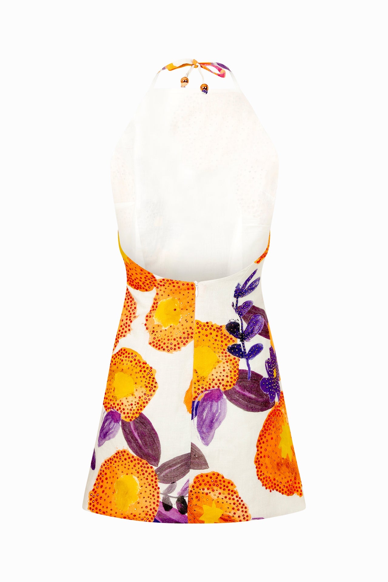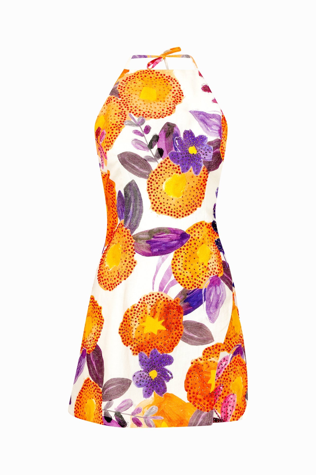 Strass Embellished Halter Neck Floral Mini Dress