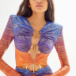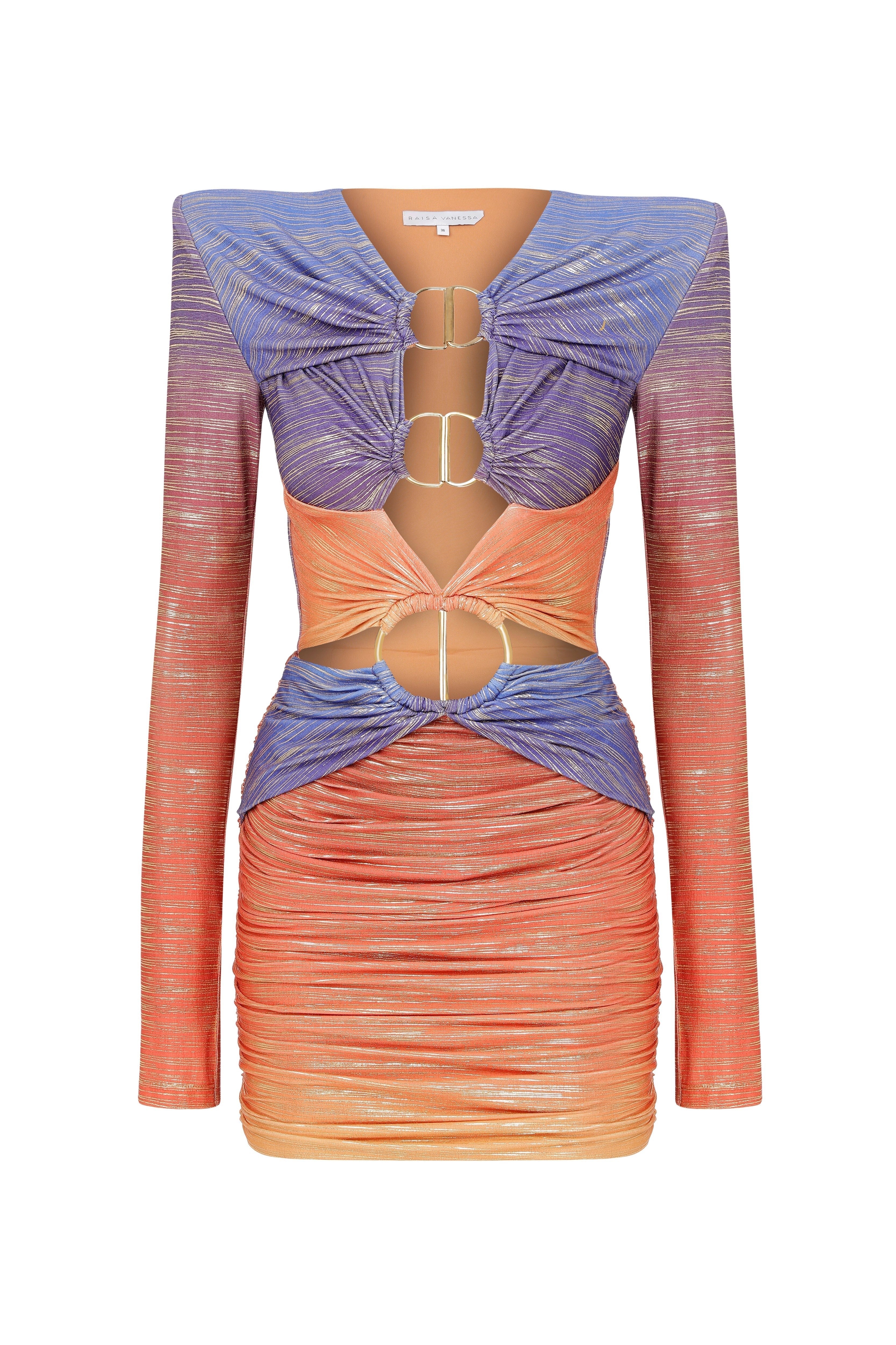 Sunset Mini Dress with Cutout and Gold Accessory Details