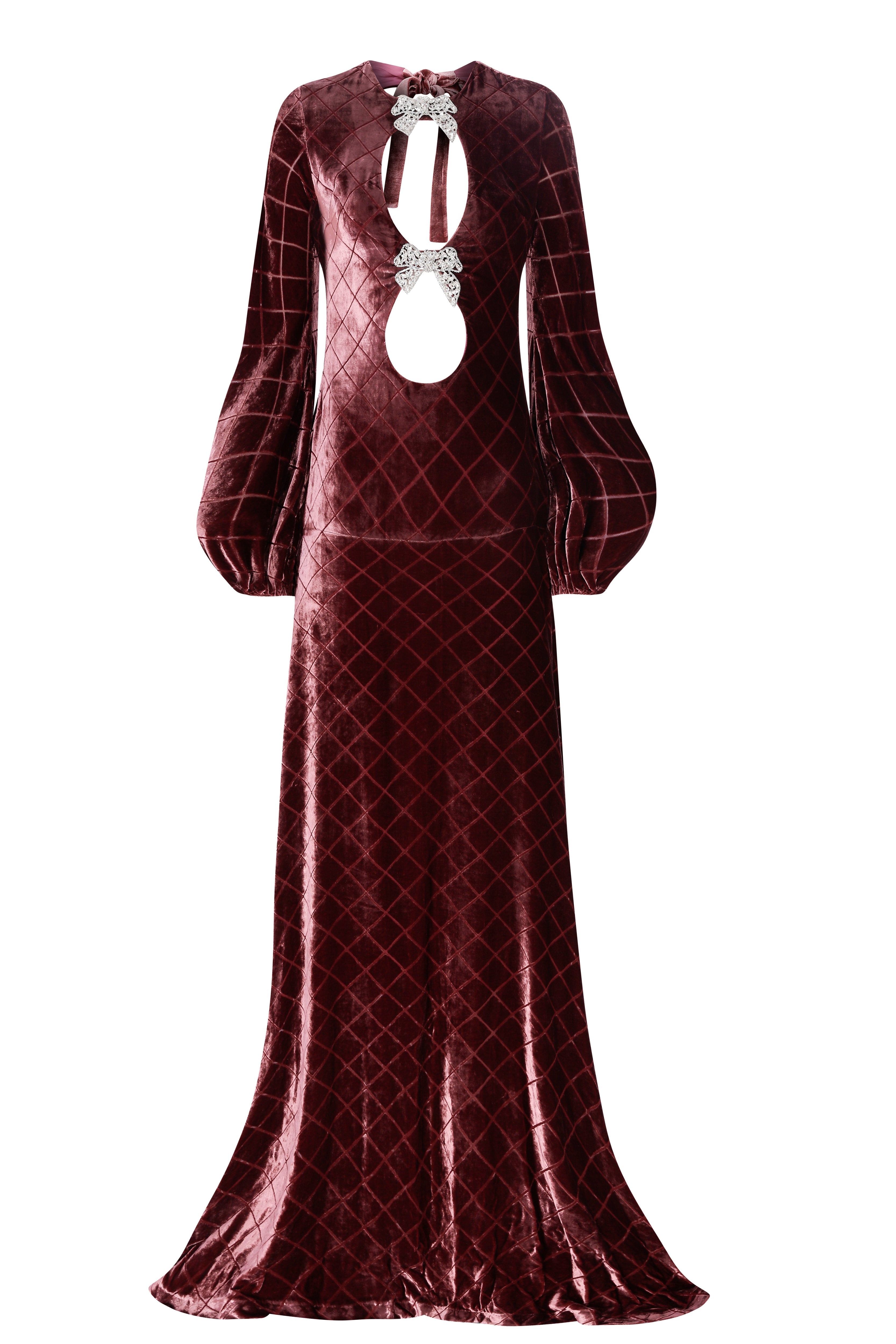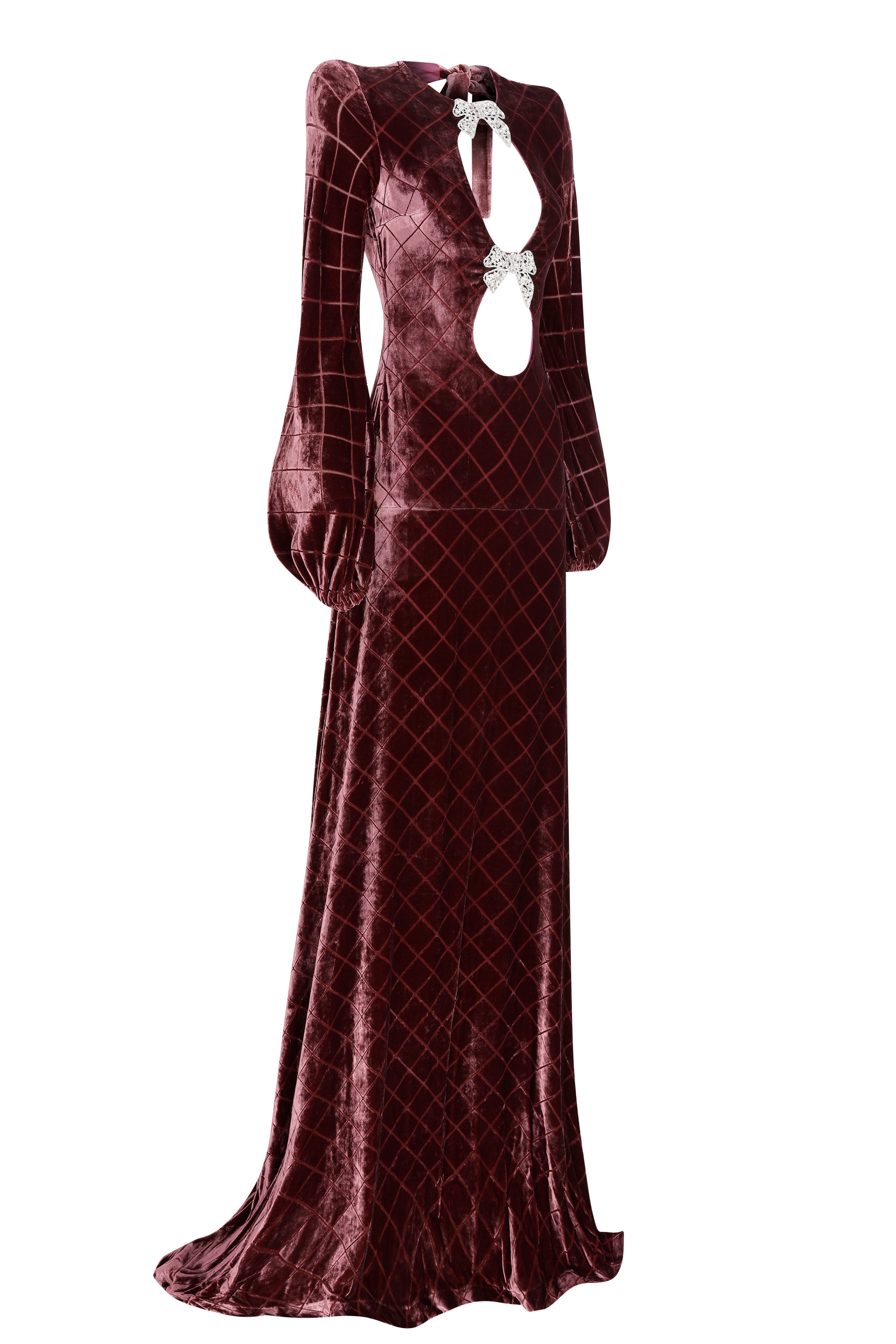 Velvet Maxi Dress with Buckled Cleavage Detail