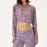 Violet Crystal Printed Chiffon Long Sleeved Crop Top