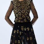 Wide Leg Tulle Pants With Leopard Sequin